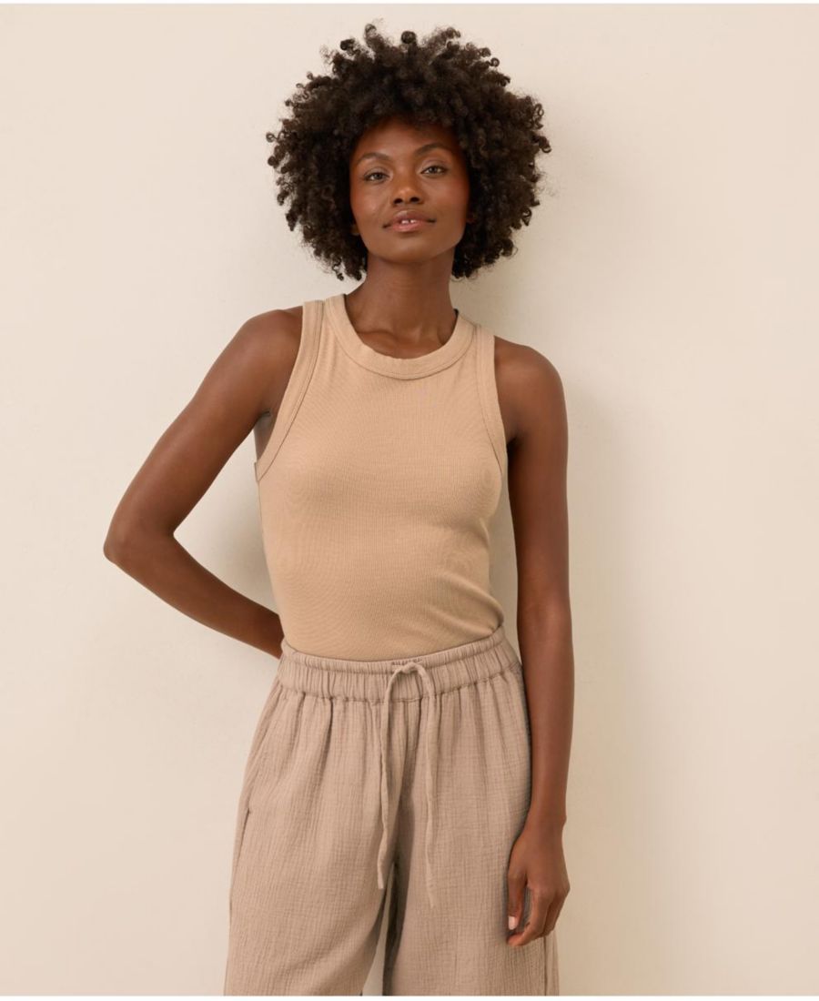 Женская майка-борцовка в рубчик с идеальной спинкой Pact, Sesame