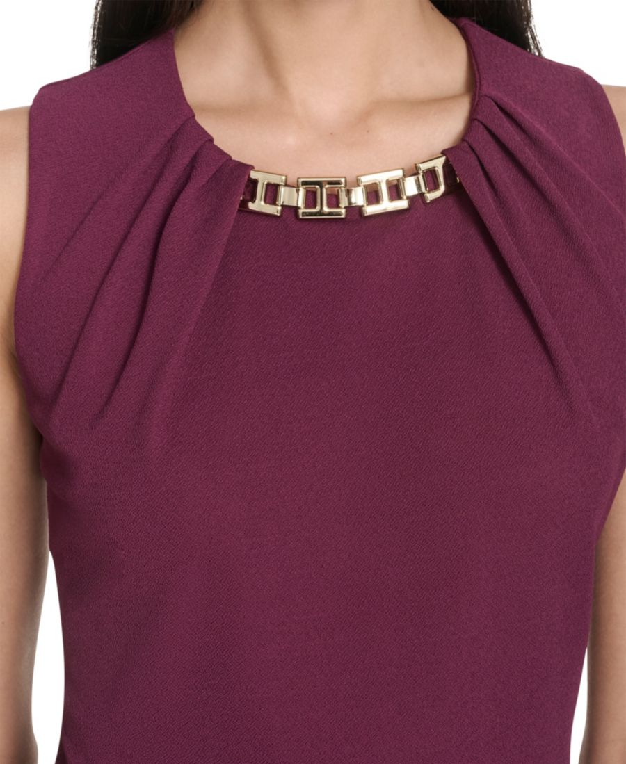 Украшен цепочкой в форме буквы H и складками на вырезе