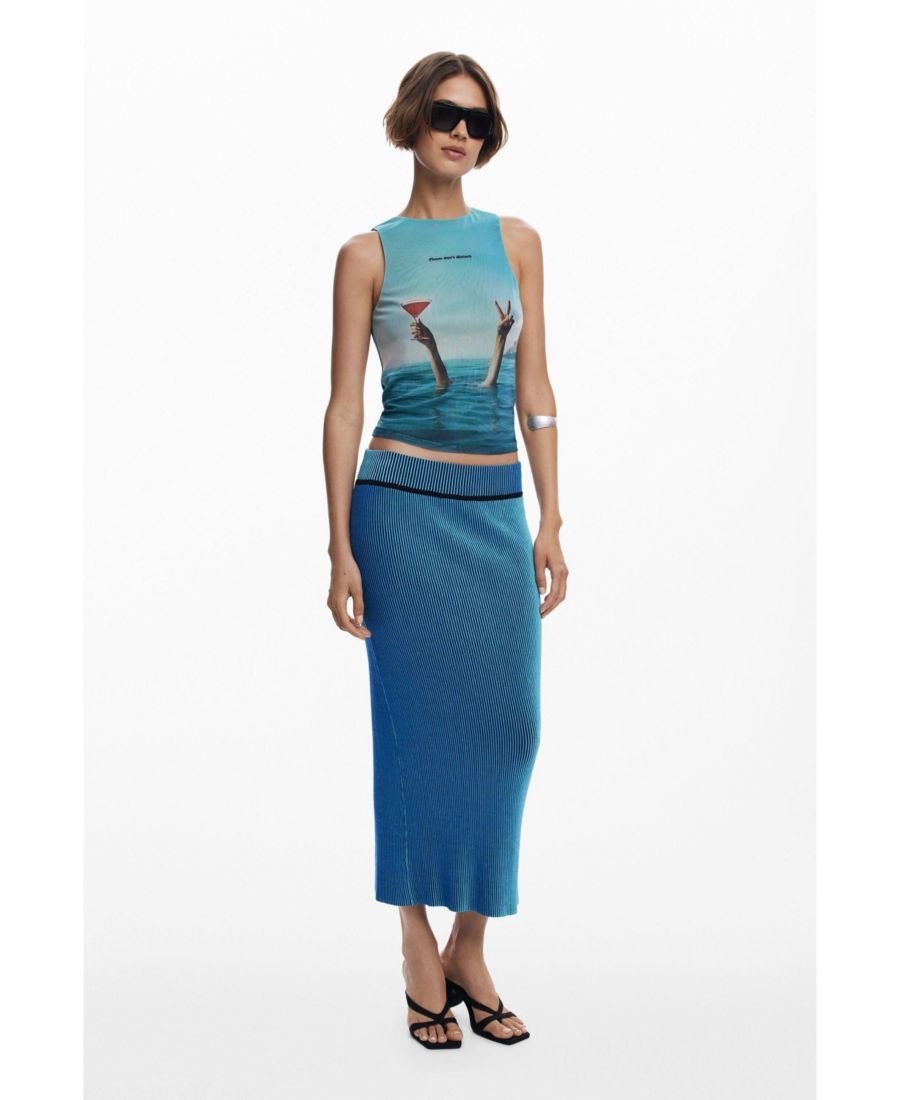 Майка без рукавов с открытой спиной, однотонная, с принтом в виде надписи и фотографии моря.