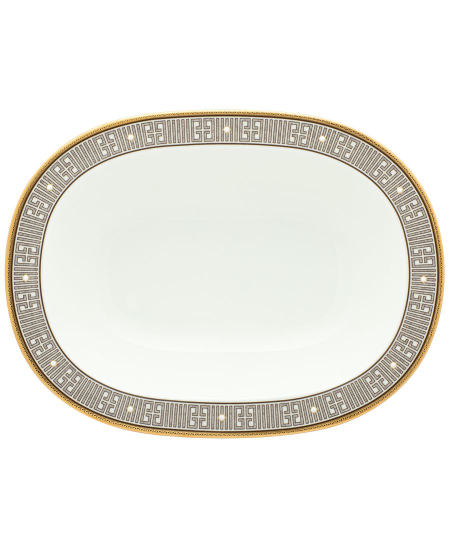 Бесконечность - смелый узор на костяном фарфоре. Каждое изделие украшено ажурным узором, интерпретированным как переплетающиеся ключи и блоки. Внутри каждого блока находится мраморный рисунок в оттенках серо-коричневого цвета. Кроме того, бронзовые изделия с узором Бесконечность украшены выпуклыми эмалевыми точками.