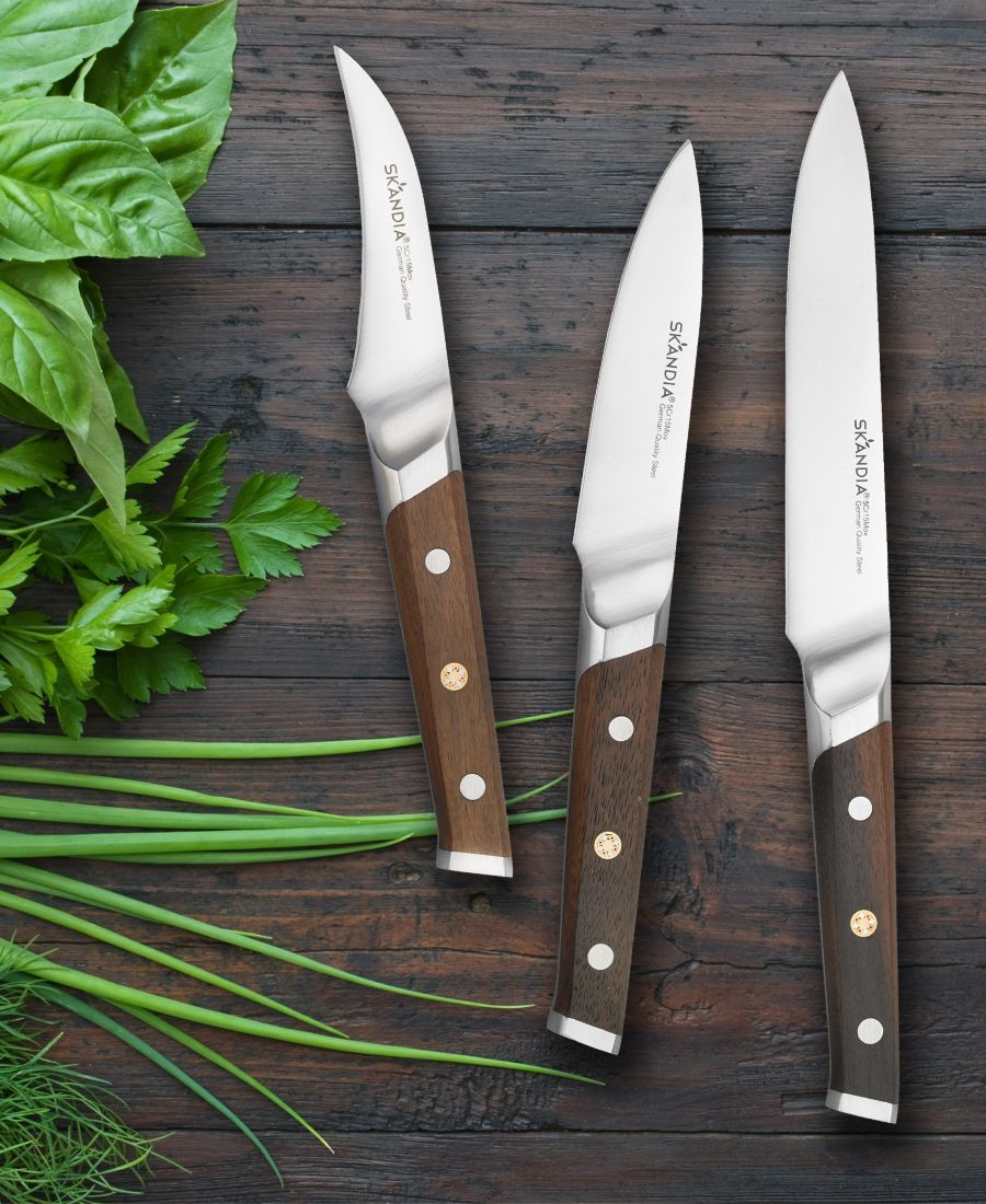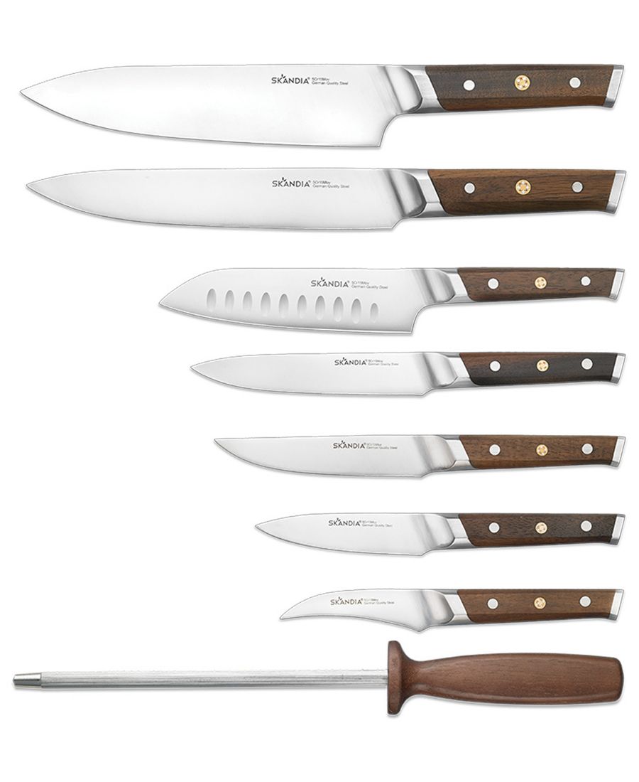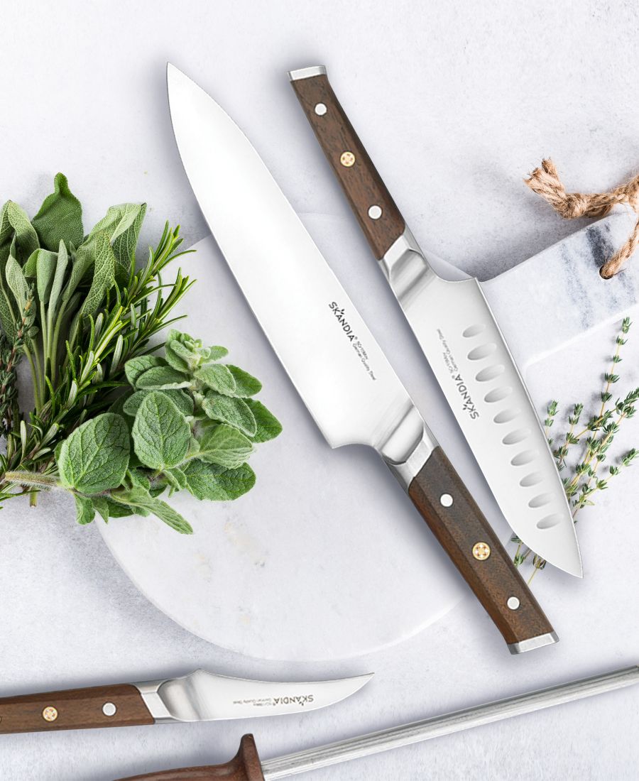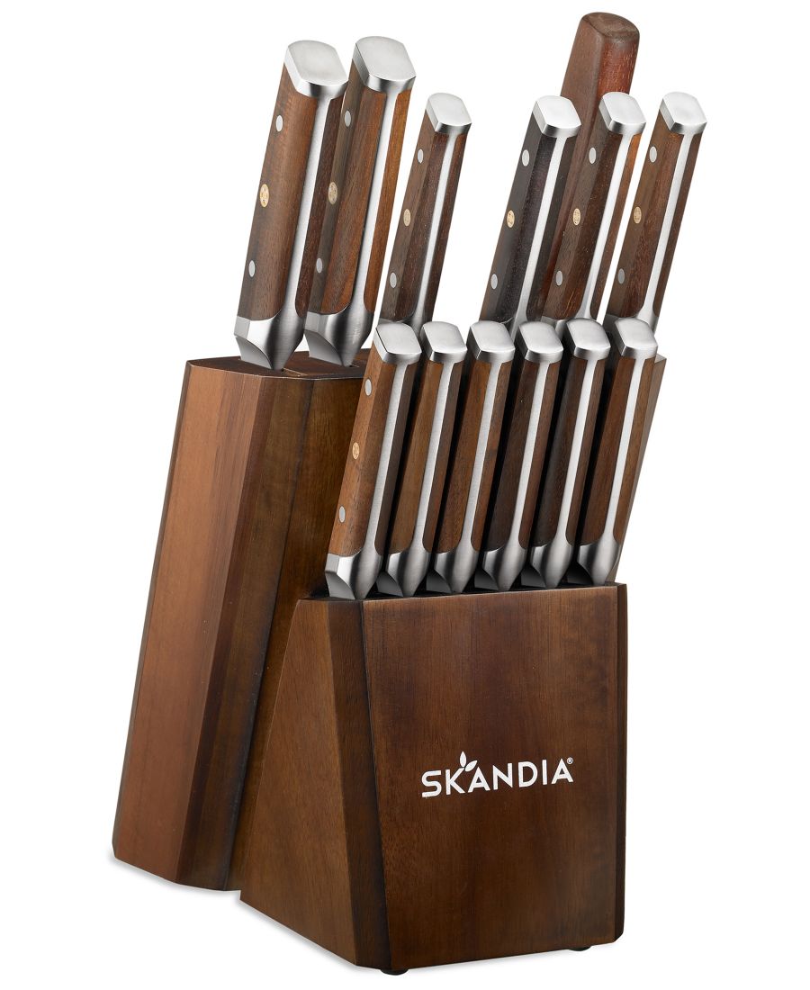 Привнесите ретро-изысканность натуральной акации в свой кулинарный мир с помощью набора столовых приборов Harley из 14 предметов от Skandia. Каждый нож изготовлен из высококачественной немецкой нержавеющей стали и оснащен красивой рукояткой из карбонизированной акации с тройным заклепочным креплением, что придает ему неповторимый деревенский шарм, красивую, едва заметную вариацию цвета и превосходную остроту. Для дополнительного акцента ручной работы, этот набор украшен эффектными медными заклепками и поставляется в привлекательной подставке из акации для безопасного хранения, эффектного размещения на столешнице и придания ему нотки природы.