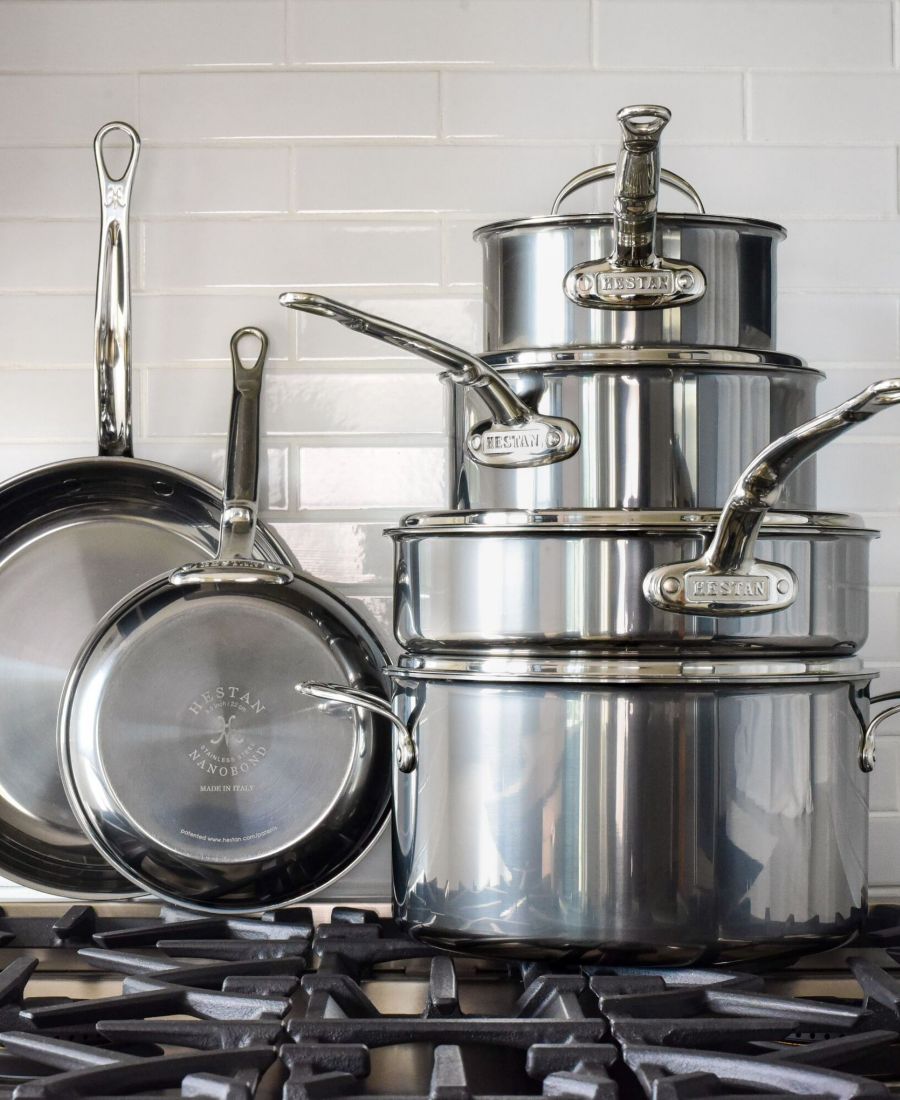 Для революционных инноваций в кухонной утвари приобретите набор из 10 предметов Hestan NanoBond из молекулярного титана. Этот тщательно подобранный ассортимент наиболее часто используемой посуды профессиональными поварами и домашними кулинарами поможет добиться наилучших результатов с исключительной производительностью и точностью при приготовлении каждого соуса, рагу, фрикассе и филе. Молекулярный титан соединяет тысячи нанослоев титана с конструкцией из нержавеющей стали 18/10, создавая невероятно прочную поверхность для приготовления пищи, в 4 раза более твердую, чем обычная нержавеющая сталь, что делает ее устойчивой к царапинам, пятнам и солевому растворению. Этот набор кастрюль и сковородок, на 100% не содержащий токсинов и не вступающий в реакцию с продуктами, оснащен эргономичными ручками для удобного захвата при приготовлении и подаче блюд. Расширенные края обеспечивают превосходное удобство наливания без капель и герметично защищены от расслоения. Сменные крышки подходят для сковородок, кастрюль и сотейников, сохраняя тепло и раскрывая исключительный вкус каждого ингредиента. Эти итальянские кастрюли и сковороды ручной работы, пригодные для использования в духовке при температуре до 1050°F (480°C), гарантируют долговечность и совершенство в кулинарии.