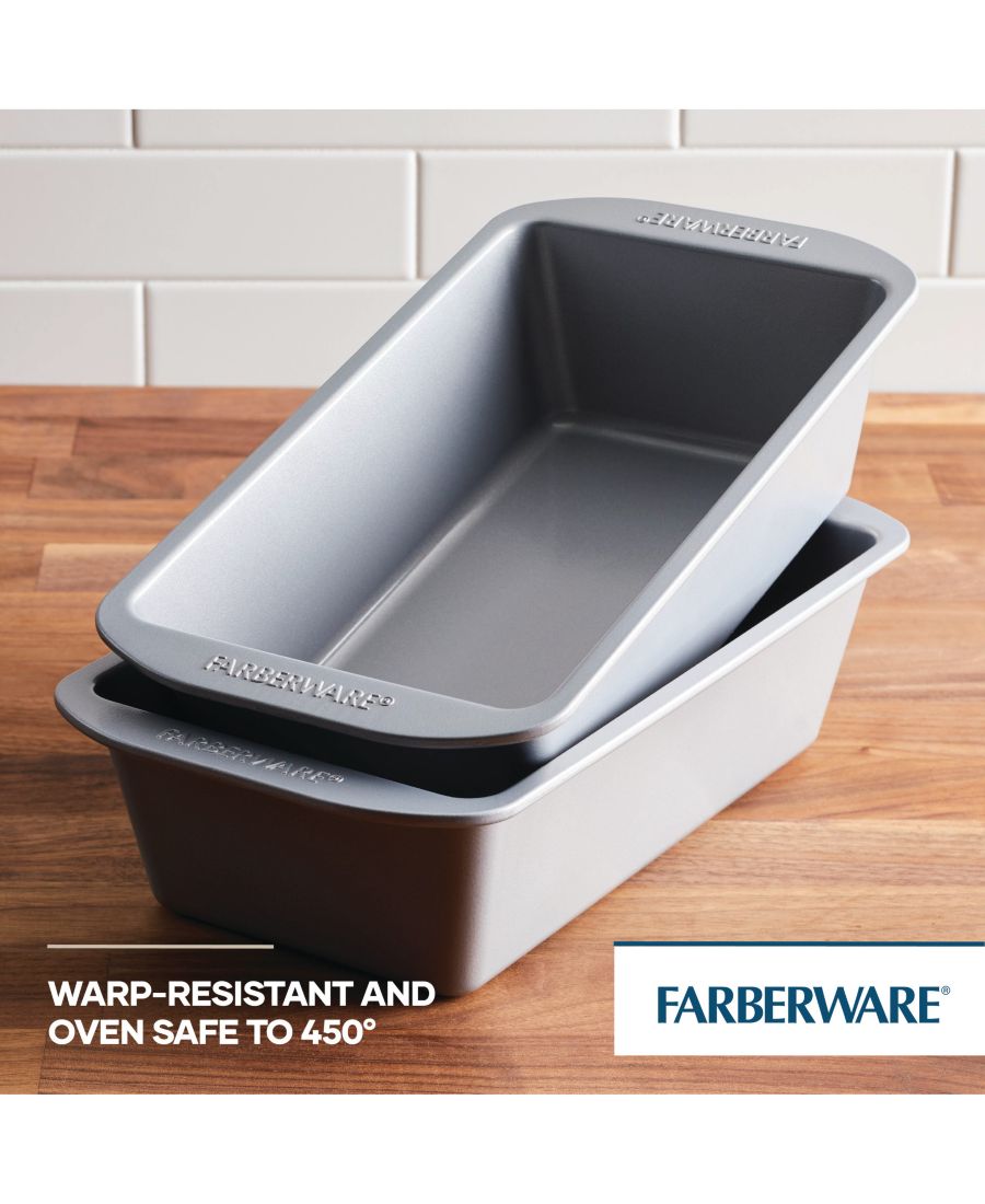 Наслаждайтесь домашними мясными рулетами, кексами и восхитительно подрумяненным хлебом с этим набором из двух антипригарных форм для выпечки хлеба Farberware GoldenBake. Эти формы размером 9 x 5 дюймов изготовлены из толстостенной стали, что обеспечивает их прочность, устойчивость к деформации и долговечность. Инновационная посуда для выпечки GoldenBake имеет изолированный воздушный карман для циркуляции воздуха, обеспечивающий равномерный нагрев и равномерное подрумянивание. Высококачественное антипригарное покрытие позволяет легко извлекать из форм хлеб из цукини, банановый хлеб и аппетитный мясной рулет с беконом, а также обеспечивает быструю очистку. Откройте для себя неизменно превосходные результаты выпечки с использованием горячего воздуха и получите более равномерное подрумянивание благодаря этим антипригарным формам для выпечки хлеба GoldenBake, которые можно использовать в духовке при температуре до 450°F (232°C), чтобы приготовить самые разнообразные любимые семейные блюда.