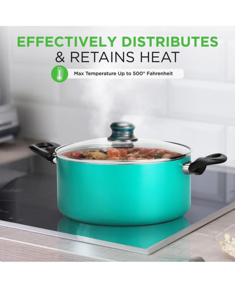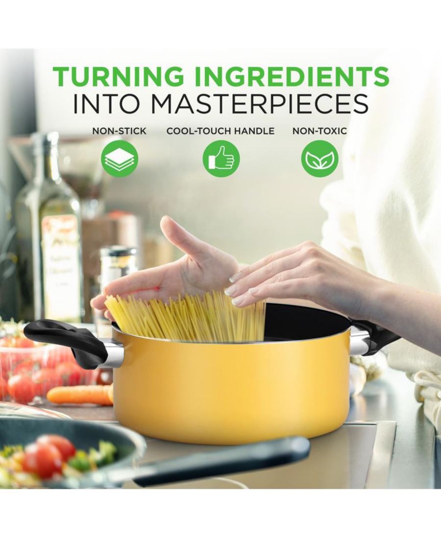 НАБОР ИЗ 15 ПРЕДМЕТОВ: Набор посуды NutriChef из 15 предметов с антипригарным покрытием включает в себя розовую и синюю кастрюлю, желтую кастрюлю, зеленую чугунную кастрюлю, черную маленькую сковороду, красную среднюю сковороду, шумовку, лопатку с прорезями, крышки, ложку для пасты, половник и толкушку для картофеля. АНТИПРИГАРНОЕ ПОКРЫТИЕ: Набор посуды с антипригарным покрытием, не содержащий PFOA/PFOS, имеет долговечное черное антипригарное покрытие внутри для легкого извлечения пищи или перемешивания, очистки и здорового приготовления пищи, а также термостойкое лакированное покрытие разных цветов снаружи. РУКОЯТКИ, НЕ НАГРЕВАЮЩИЕСЯ НА ОТКРЫТОМ ЛИЦЕ: Набор кастрюль оснащен эргономичными и термостойкими ручками из черного бакелита, обеспечивающими комфортное и безопасное приготовление пищи, стильным красочным дизайном кухонной посуды, устойчивостью к пятнам и возможностью мытья в посудомоечной машине. ПРОЗРАЧНЫЕ КРЫШКИ: Набор посуды с антипригарным покрытием оснащен прозрачными крышками разных размеров. Крышки из закаленного стекла с вентиляционными отверстиями для выхода пара, а также термостойкие кухонные принадлежности для удобного приготовления пищи. ПОДХОДИТ ДЛЯ ИНДУКЦИОННЫХ ПЛИТ: Кастрюли и сковороды безопасны для использования на газовых, электрических, керамических и индукционных плитах. Изготовлены из прессованного алюминия толщиной 18-25 мкм. Импортные