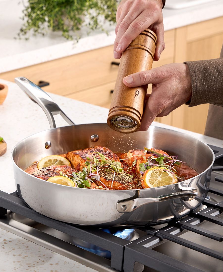 Набор посуды Calphalon Premier, созданный для домашних поваров, ценящих качество и производительность, разработан для точного приготовления пищи и долговечности. Благодаря сверхпрочной 5-слойной конструкции и термочувствительному сердечнику, эта сковорода оснащена технологией Calphalon Turbo Temp и нагревается до 20% быстрее, позволяя вам начать готовить быстрее. От ужинов в будние дни до изысканных блюд - этот набор содержит все необходимое для приготовления блюд, которые понравятся всем. Матовая отделка придаст вашей кухне профессиональный вид, а совместимость с любыми плитами и возможностью использования в духовке гарантирует легкое приготовление от начала до конца. Готовьте с легкостью и обеспечьте себе качество ресторанного уровня с посудой Calphalon Premier.