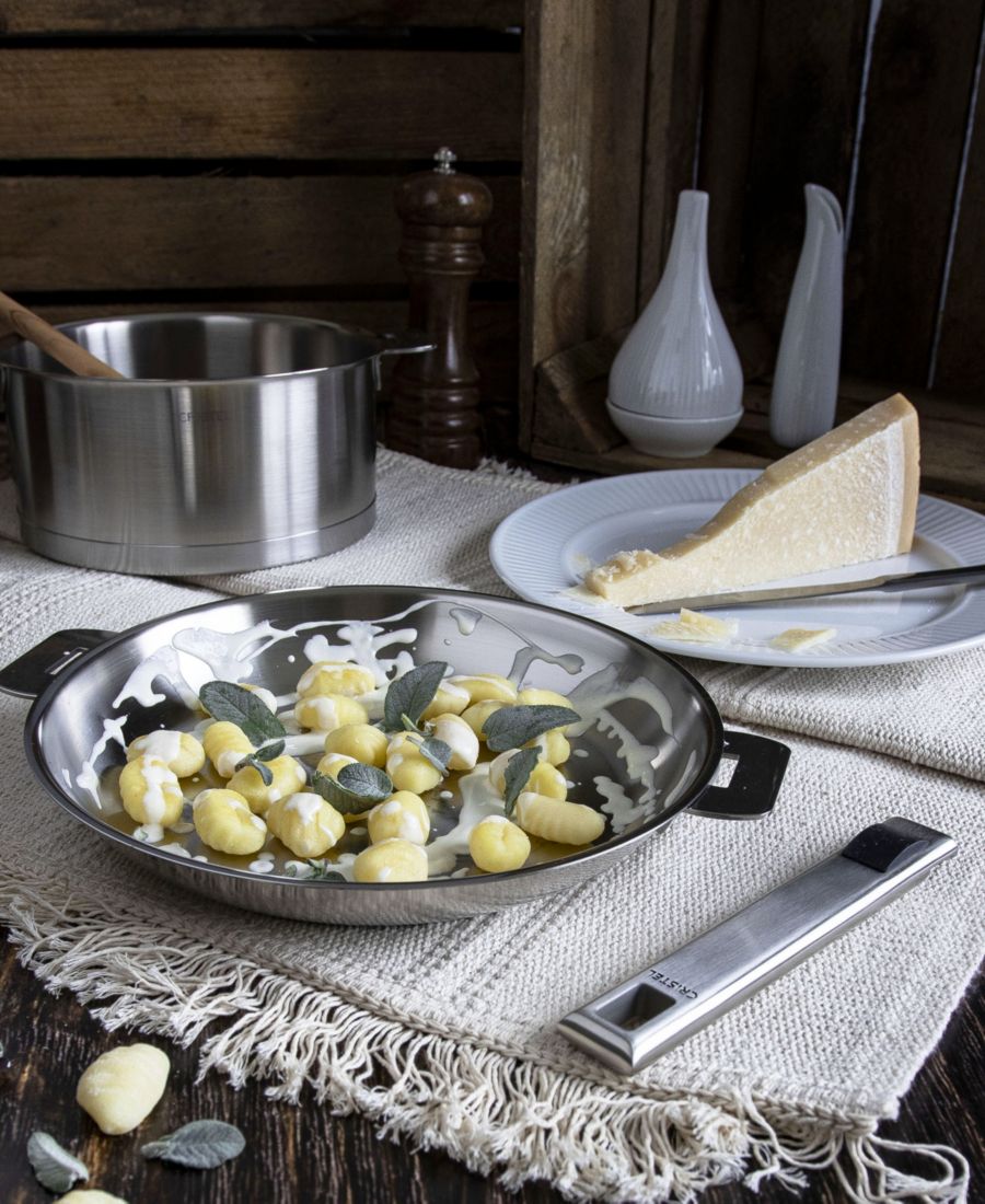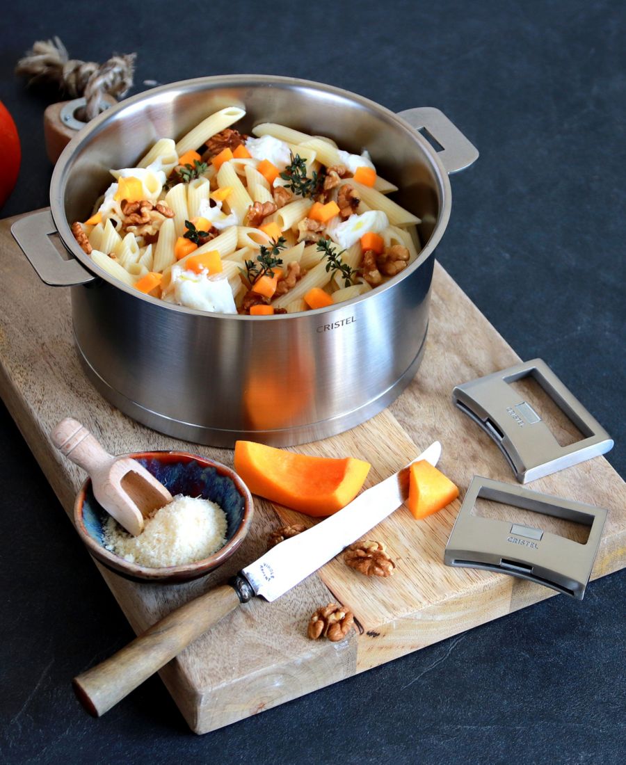 Набор посуды Strate из нержавеющей стали, состоящий из 7 предметов: 1 кастрюля (4 кварты) с крышкой, 1 сковорода (11 дюймов) и 1 сотейник (3,5 кварты), 2 длинные ручки из нержавеющей стали. Система съемных ручек позволяет экономить место в ящиках, шкафах и посудомоечной машине. Благодаря эффективности L-образного термодиффузорного дна Cristel, совместимого с индукционными плитами, система съемных ручек Strate подходит для кухонь любого размера и станет ценным помощником во всех ваших кулинарных приготовлениях. Практичная система съемных ручек позволяет превратить посуду в сервировочное блюдо, заменив длинную ручку боковыми ручками. Посуда Strate сохраняет вкус блюд и легко моется после приготовления.