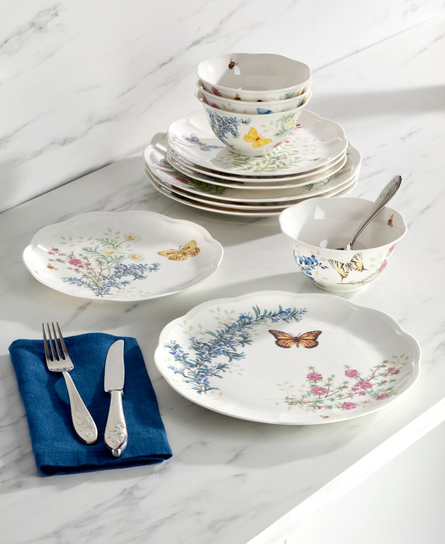 Постоянно расширяющаяся и развивающаяся, самая продаваемая коллекция Lenox обновляется к своему 25-летнему юбилею, представляя собой сочетание разнообразных цветочных мотивов с бабочками. Привнесите в свой дом самый популярный узор посуды в виде этих прекрасных обеденных тарелок! Коллекция Butterfly Meadow пользуется популярностью уже более 20 лет. Прекрасный рисунок, прочный фарфор и волнистая отделка делают ее незаменимой вещью, которая вам обязательно понравится!