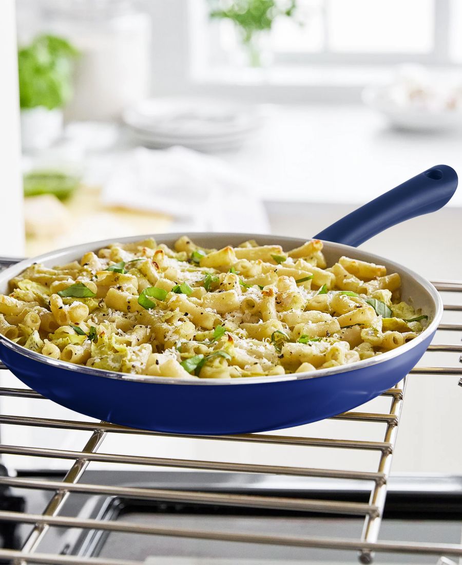 В набор входят: сковорода 8 дюймов, сковорода 10 дюймов, сковорода 12 дюймов, кастрюля объемом 1,5 кварты с крышкой, кастрюля объемом 3 кварты с крышкой, набор силиконовых кухонных принадлежностей из 5 предметов, набор мерных ложек из 5 предметов, набор мерных стаканчиков из 5 предметов. Нетоксичное керамическое антипригарное покрытие Индукционное дно, совместимо со всеми типами плит Алюминий, керамика Можно мыть в посудомоечной машине Импортный товар
