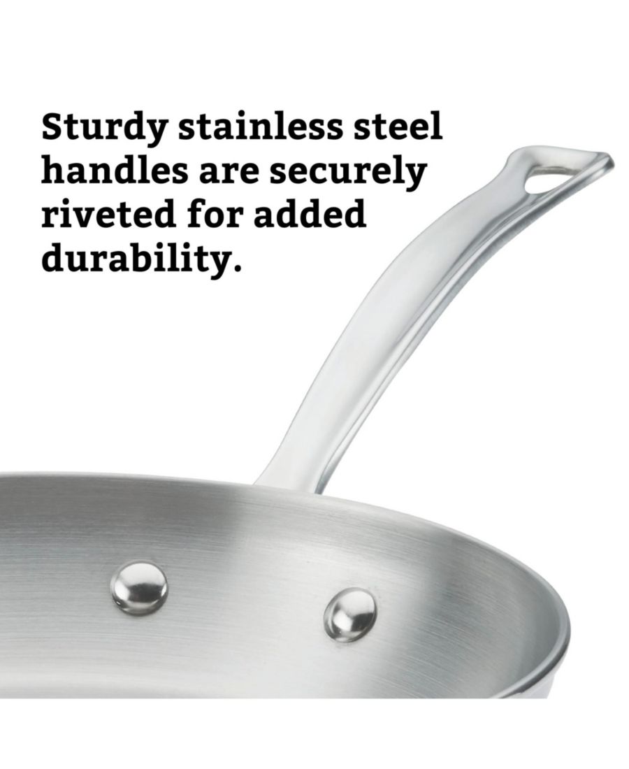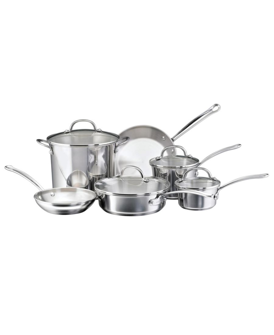 Набор посуды Farberware Millennium из 10 предметов из нержавеющей стали предлагает отличное соотношение цены и качества, включая основные кастрюли и сковороды, необходимые для обустройства вашей кухни. Толстый алюминиевый сердечник обеспечивает исключительное распределение тепла и совместим с использованием на всех типах плит. Подходит для использования в духовке при температуре до 500°F (260°C).