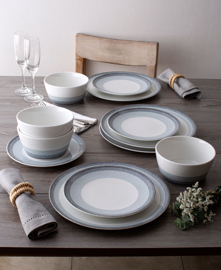 Коллекция Colorscapes Layers отличается разнообразием цветов, современным дизайном и долговечностью. Каждое изделие имеет тонкую текстуру, состоящую из закручивающихся концентрических кругов. В каждом цветовом варианте присутствует градиент цветовых полос. Все изделия изготовлены из прочного белого фарфора и предназначены для повседневного использования.