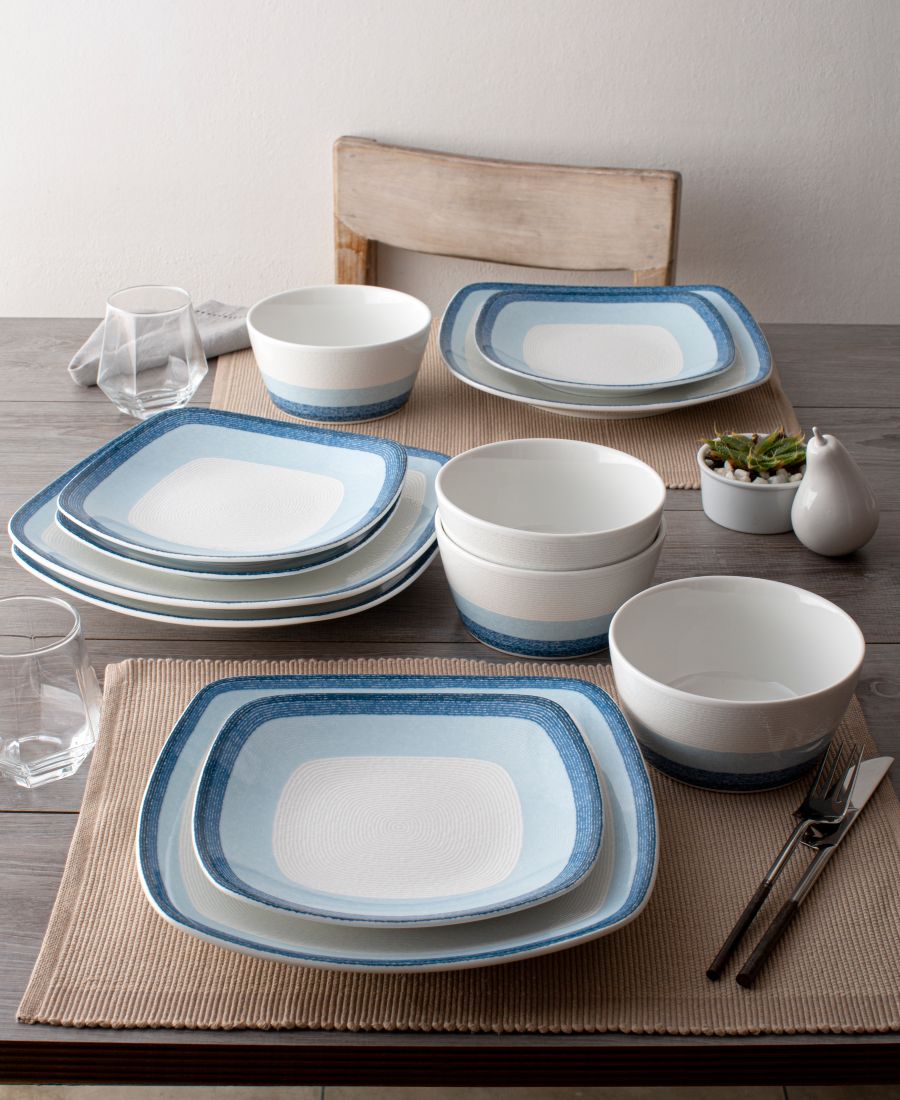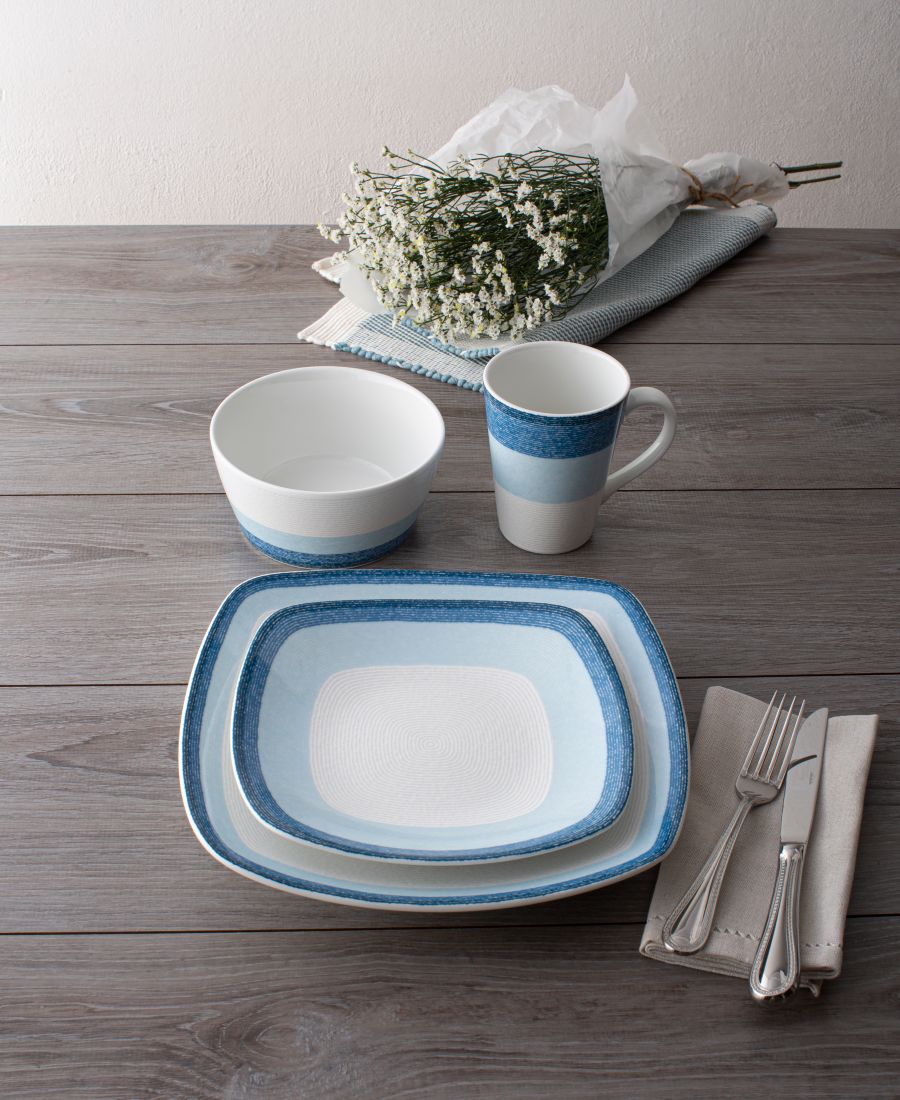 Коллекция Colorscapes Layers отличается разнообразием цветов, современным дизайном и долговечностью. Каждое изделие имеет тонкую текстуру, состоящую из закручивающихся концентрических кругов. В каждом цветовом варианте присутствует градиент цветовых полос. Все изделия изготовлены из прочного белого фарфора и предназначены для повседневного использования.