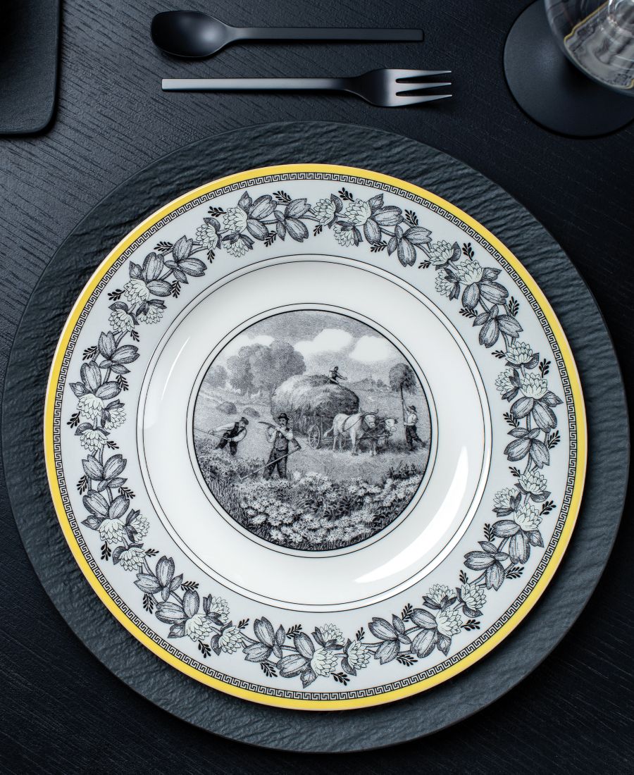 Совершите путешествие во времени в живописную французскую сельскую местность с коллекцией Audun. Смелая желто-черная палитра создает неповторимый стиль. Комбинируйте различные элементы, чтобы создать изысканную сервировку стола, которая отдает дань многовековым традициям, оставаясь при этом свежей и современной.