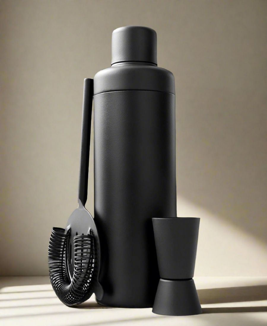 Этот набор подходит как для начинающих, так и для опытных барменов. Он представляет собой высококачественное оборудование для домашнего бара, отличающееся элегантной современной матовой черной отделкой и прочной конструкцией из нержавеющей стали, гарантирующей длительный срок службы.