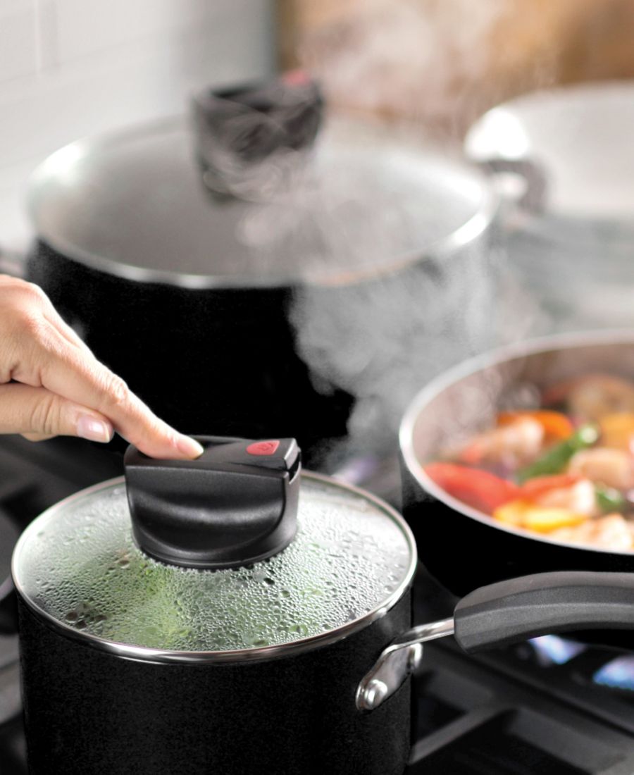 Этот универсальный набор необходимых принадлежностей, а также инструментов, безопасных для антипригарного покрытия, изготовлен из прочного, быстро нагревающегося алюминия, что обеспечивает долговечность. Крышки оснащены технологией Smart Control, предотвращающей выкипание.