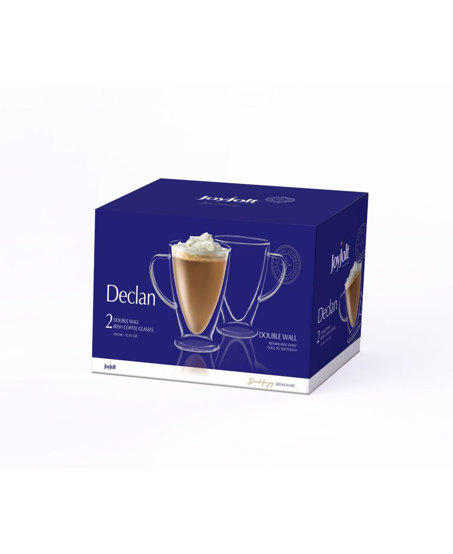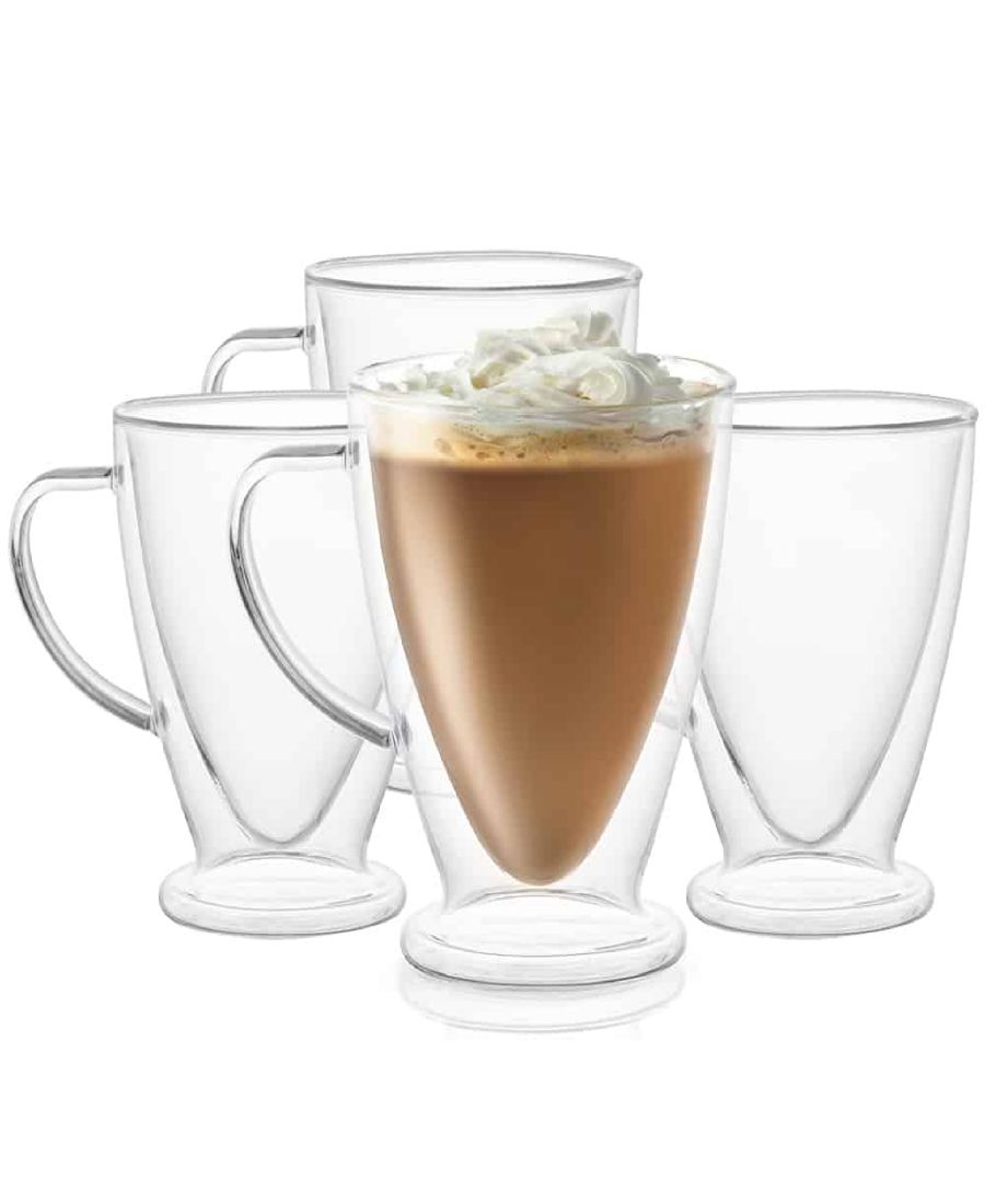 Набор из 4 кружек JoyJolt Declan с двойными стенками объемом 425 мл (15 унций) для кофе и чая сохранит напиток горячим или холодным, при этом внешняя стеклянная поверхность останется безопасной на ощупь. Они станут идеальным дополнением к любому дому или ресторану.