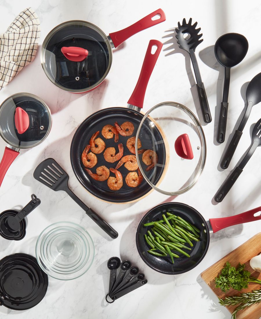 Набор посуды из алюминия с антипригарным покрытием, 31 предмет Basic Essentials, Red