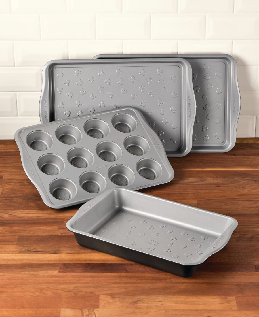 Создавайте свои любимые выпечки с помощью этого набора из 4 предметов, входящего в эксклюзивную линейку посуды для выпечки от Farberware, на противне которого выгравирован культовый силуэт Микки Мауса из мультфильма Disney. Авторские права: Disney.