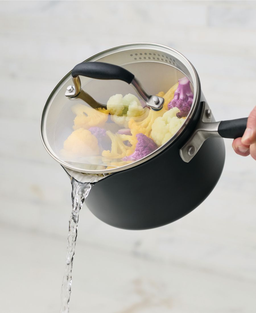 Этот стильный и невероятно функциональный набор посуды из линейки Anolon Advanced Ceramic представляет собой коллекцию высококачественных предметов первой необходимости с прочным антипригарным покрытием и равномерным, надежным нагревом.