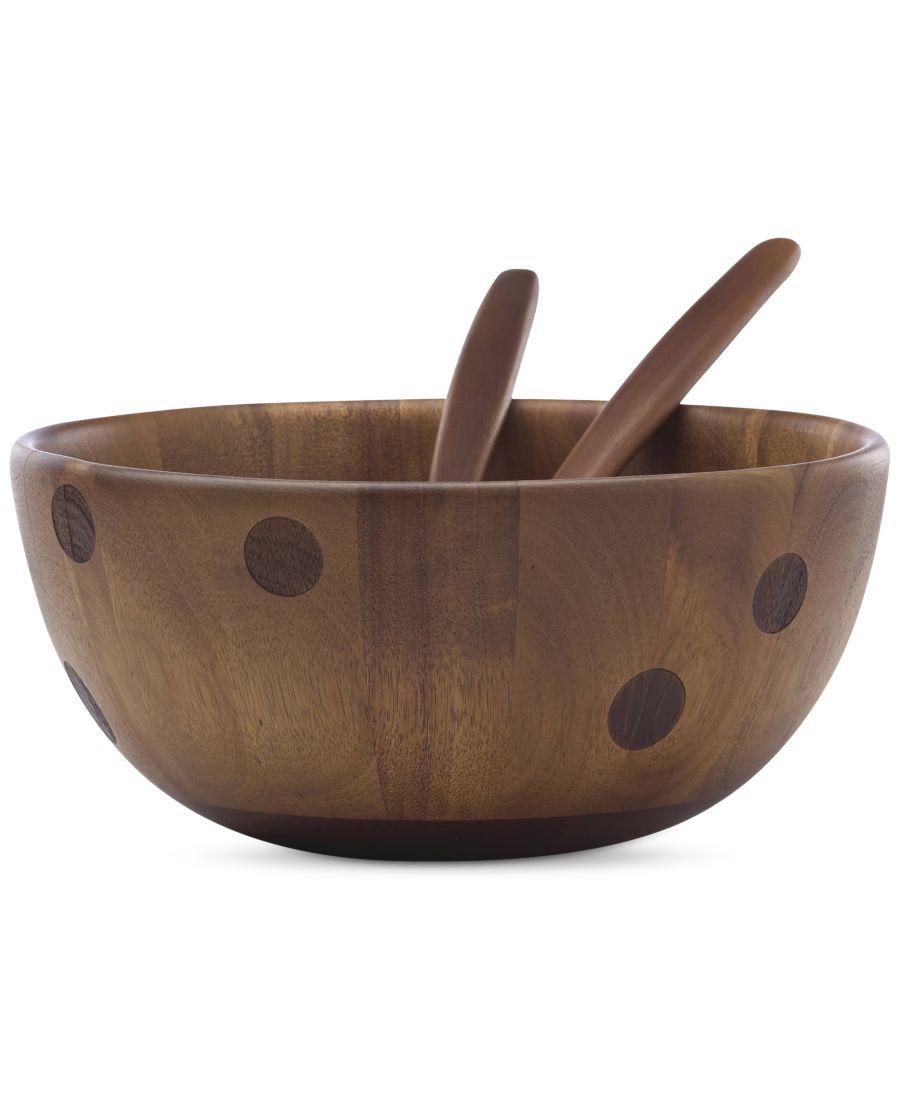 Подавайте салат стильно в этой миске объемом 3 кварты от Kate Spade New York, выполненной из акации с акцентами в виде узора Deco Dot. Набор дополняют сервировочные принадлежности.