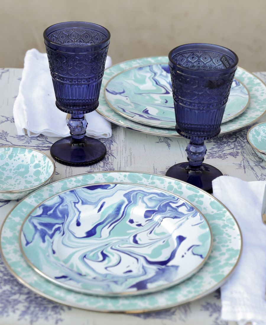 Накройте стильный стол этими обеденными тарелками Golden Rabbit - элегантным набором из четырех тарелок из стали с фарфоровой эмалью и красивой мраморной отделкой.