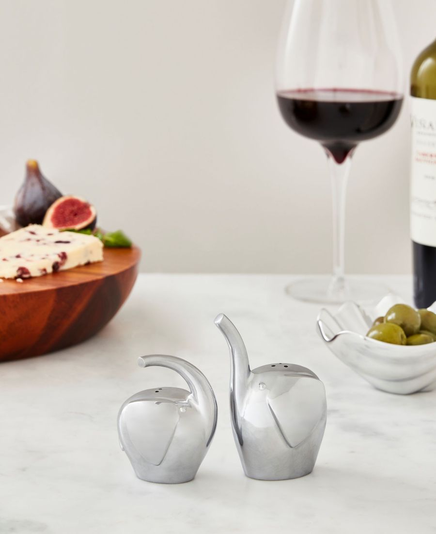 В наборе солонки и перечницы Savanna Elephant компания Nambé идеально сочетает форму и функциональность, воплощая их в причудливых формах.