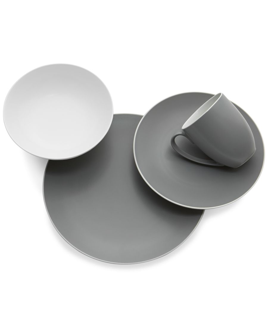 В комплект входят обеденная тарелка 11,25 дюйма, салатная тарелка 9 дюймов, миска 7,5 дюйма и кружка высотой 4,5 дюйма.