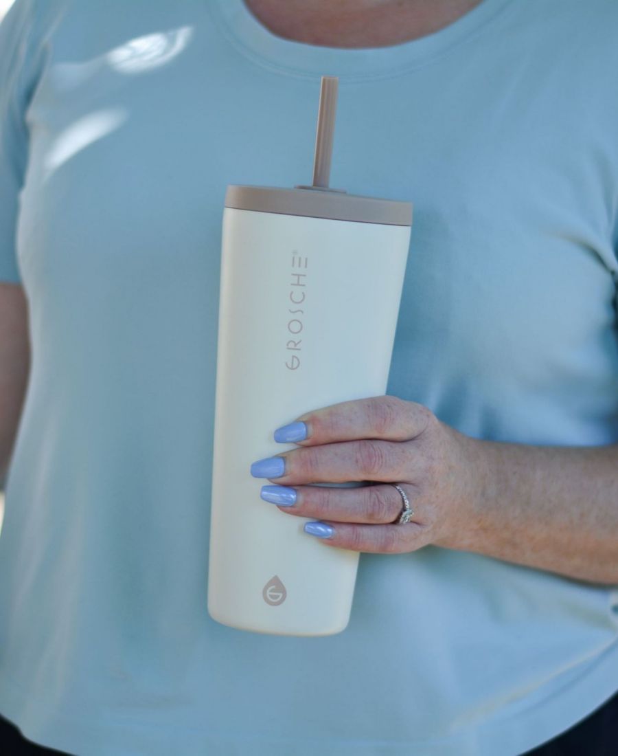 Термокружка Jasper с трубочкой сохраняет напитки холодными в течение нескольких часов.