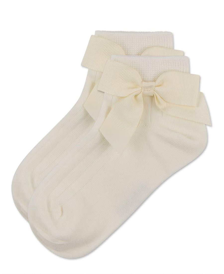 Детские ребристые носки с бантом на щиколотке MeMoi, Winter white