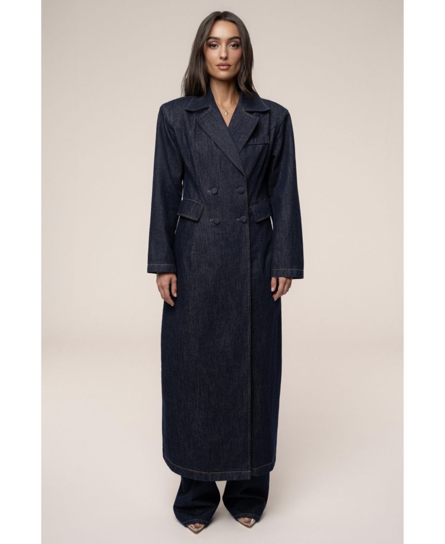 Представляем наше фирменное джинсовое пальто Denim Signature Coat - эффектную вещь, которая переосмысливает классическое длинное пальто из насыщенного темно-синего денима. Идеально скроенное, оно имеет двубортную застежку и широкие лацканы с лацканами, подчеркнутые яркой контрастной строчкой для современного завершения образа. Элегантные детали, такие как передние накладные карманы и декоративный прорезной карман на груди, добавляют стиля.