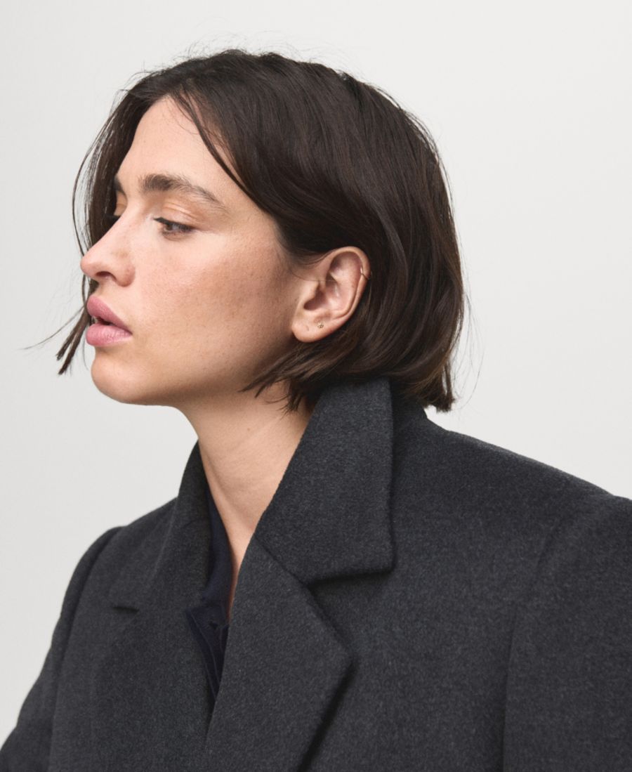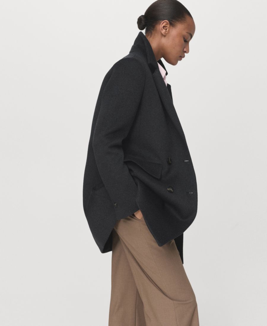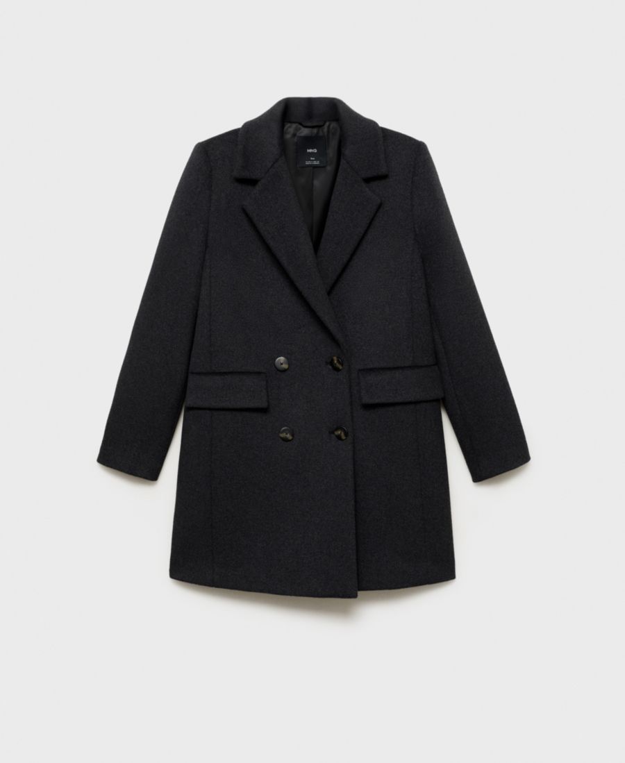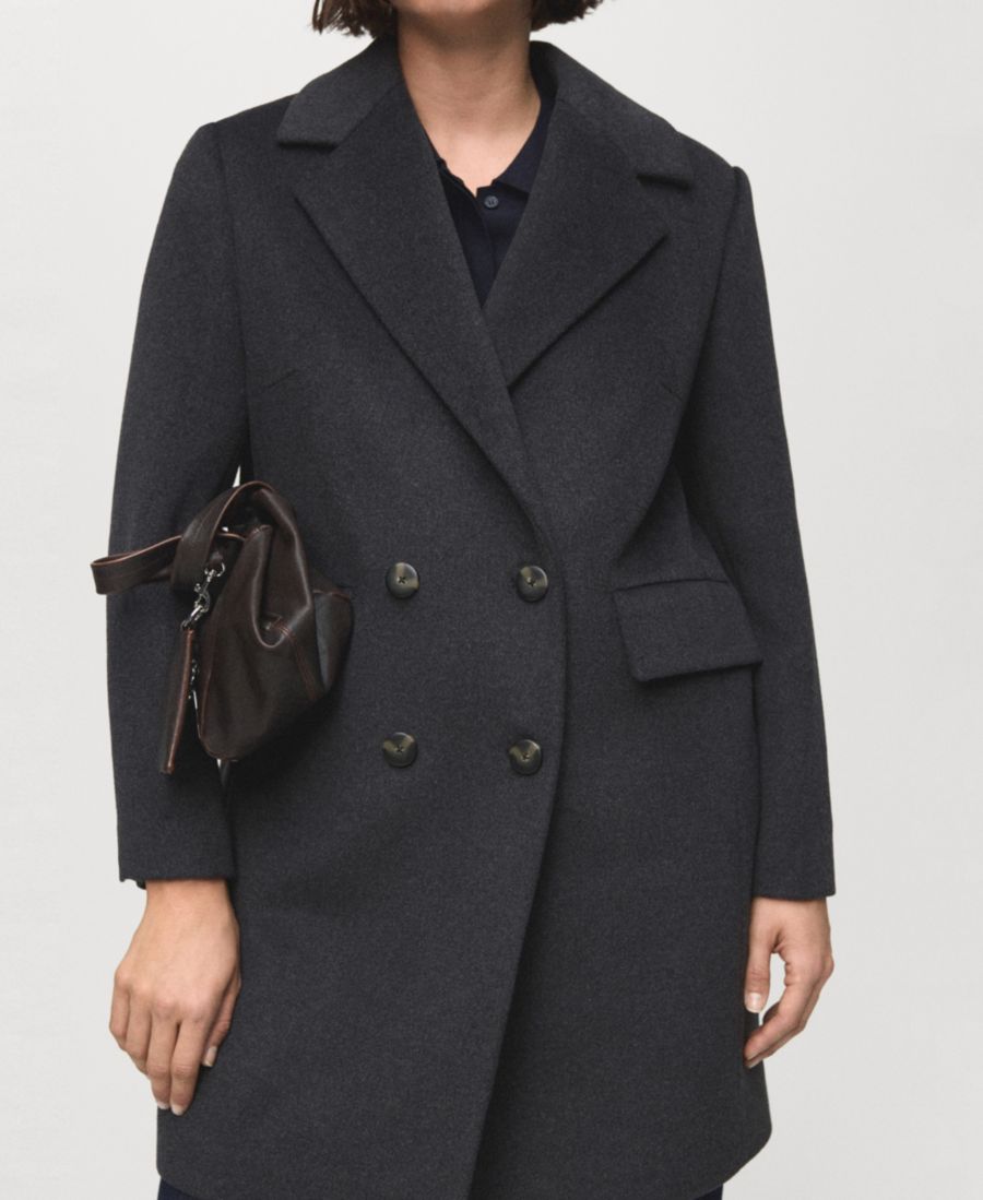 Классический двубортный шерстяной пальто от Mango обеспечивает структурированное тепло. Изготовленное из смесовой шерстяной ткани, оно имеет прямой крой с V-образным вырезом и отложными лацками, длинные рукава с манжетами на пуговицах, накладные карманы и двубортную застежку с подкладкой.