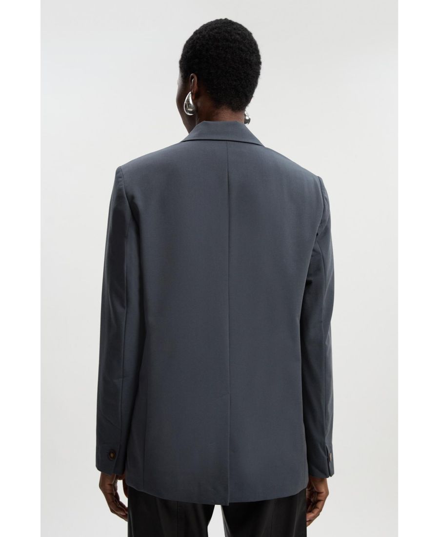 Приталенный твиловый блейзер с модным свободным силуэтом для современного образа. Однобортный дизайн с характерной застежкой на пуговицы, добавляющей изысканности. Структурированные лацканы с вырезом создают утонченный силуэт. Практичные передние карманы с лаконичным дизайном обеспечивают стиль и функциональность. Полностью на подкладке, обеспечивает комфорт при ношении и сохраняет форму блейзера в течение дня.