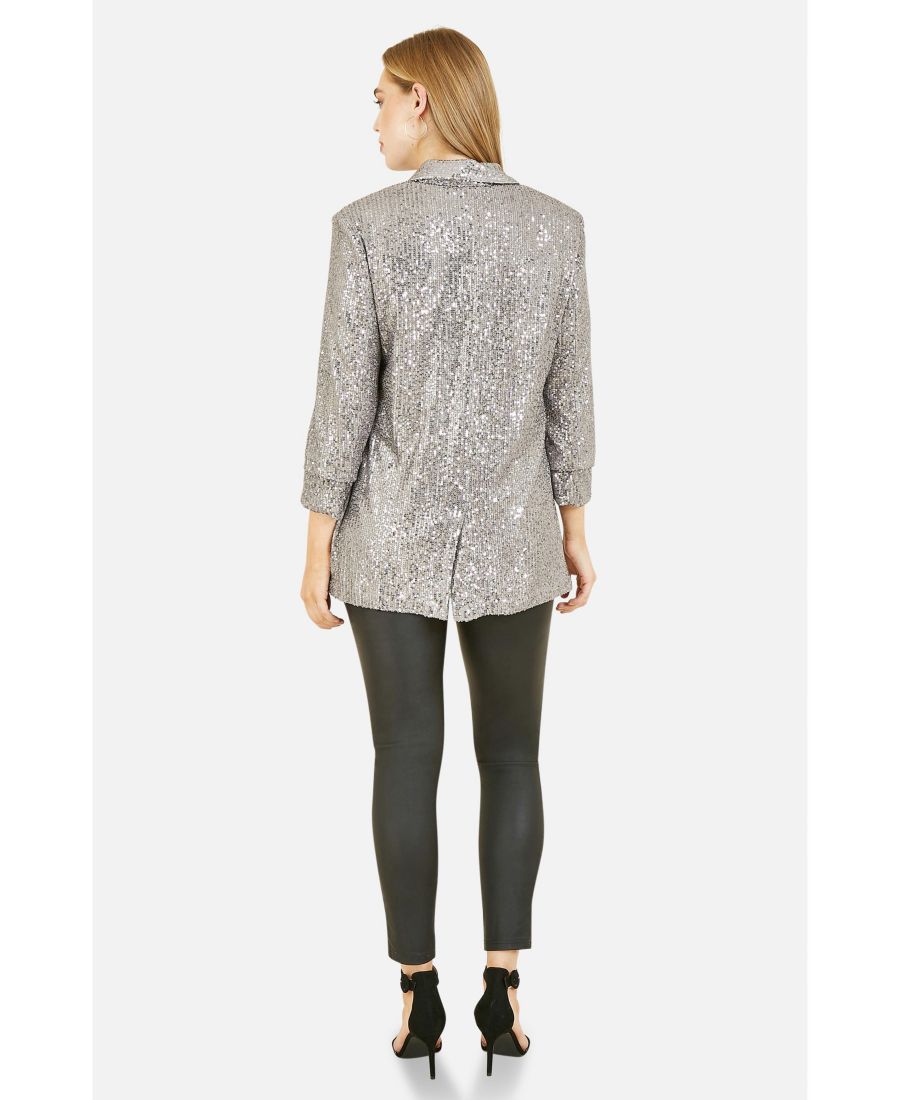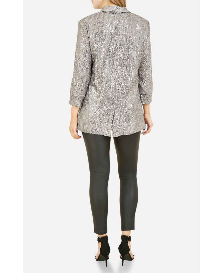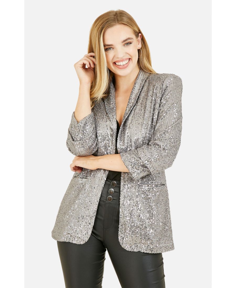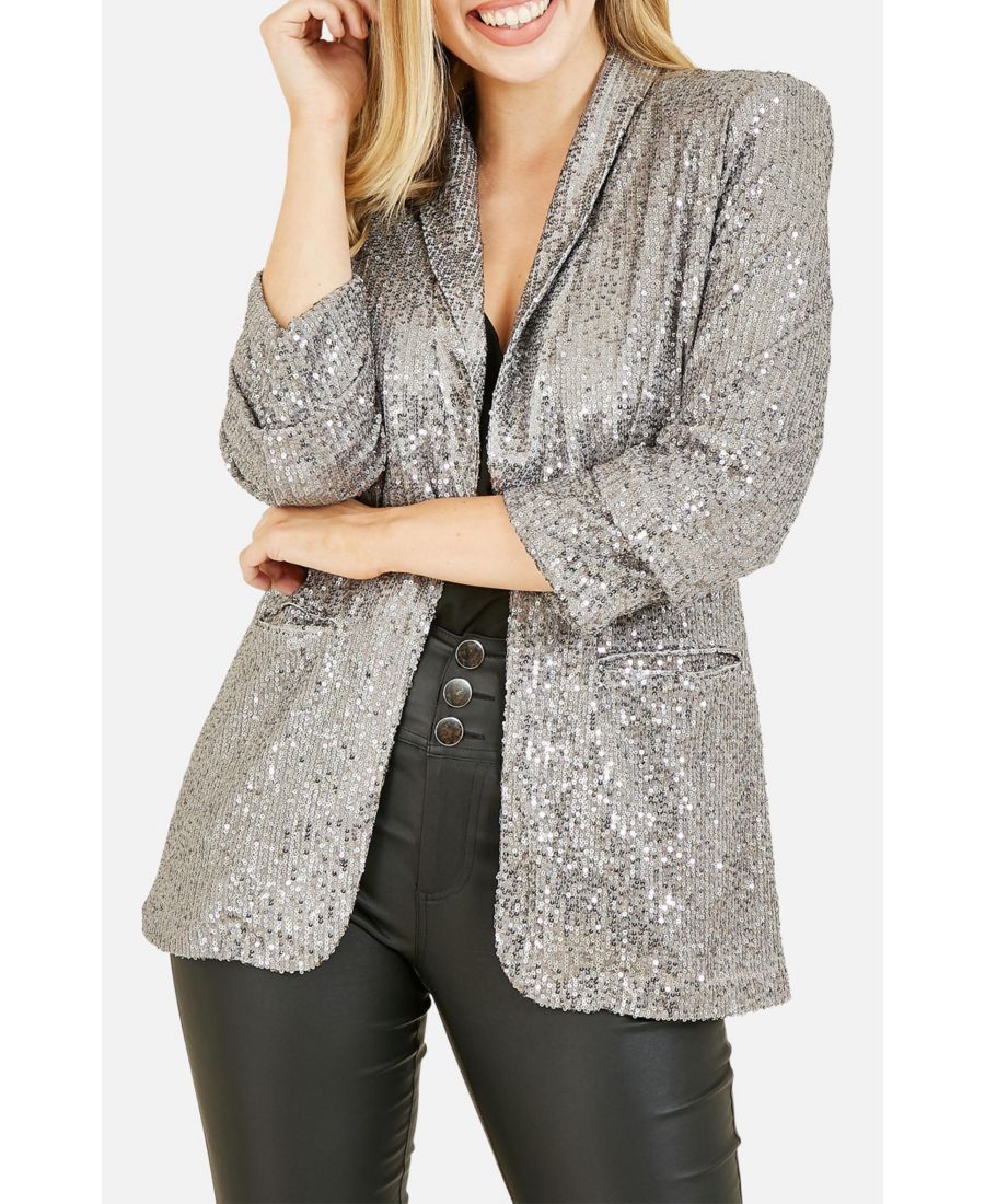 Женский блейзер с пайетками и карманами Yumi, Silver