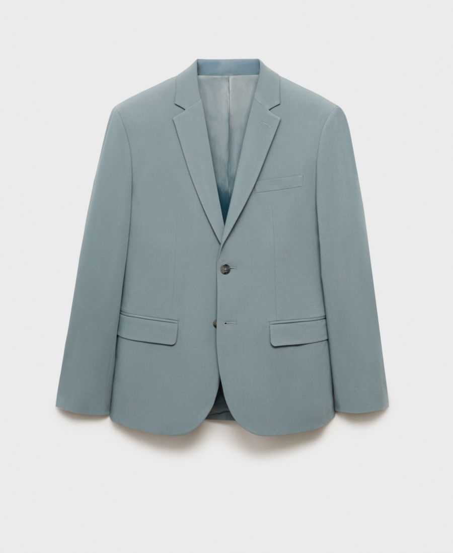 Мужской пиджак из эластичной ткани, приталенный крой MANGO, Aqua Green