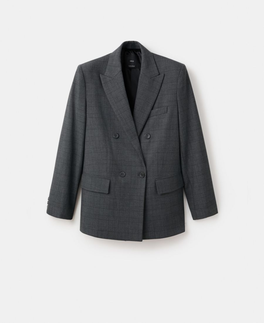 Женский двубортный клетчатый пиджак MANGO, Grey