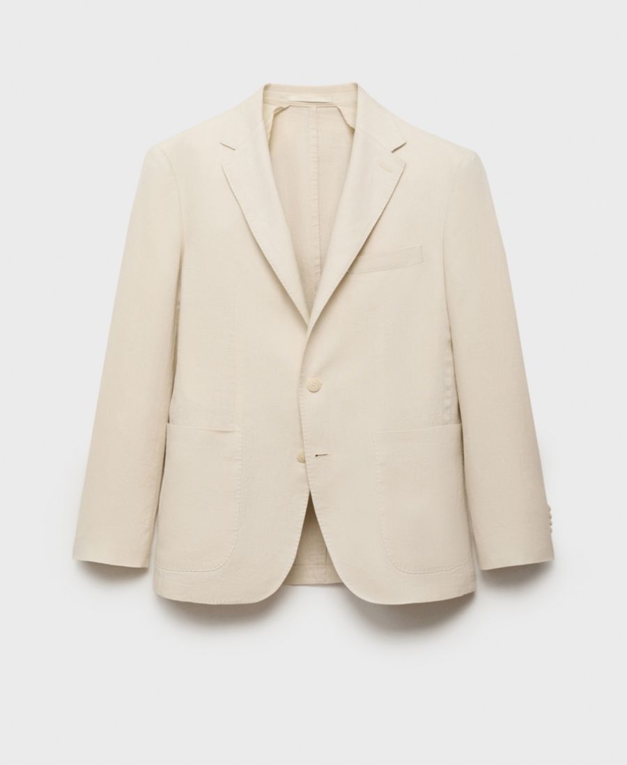 Мужской приталенный пиджак из льна Salerno MANGO, Ecru