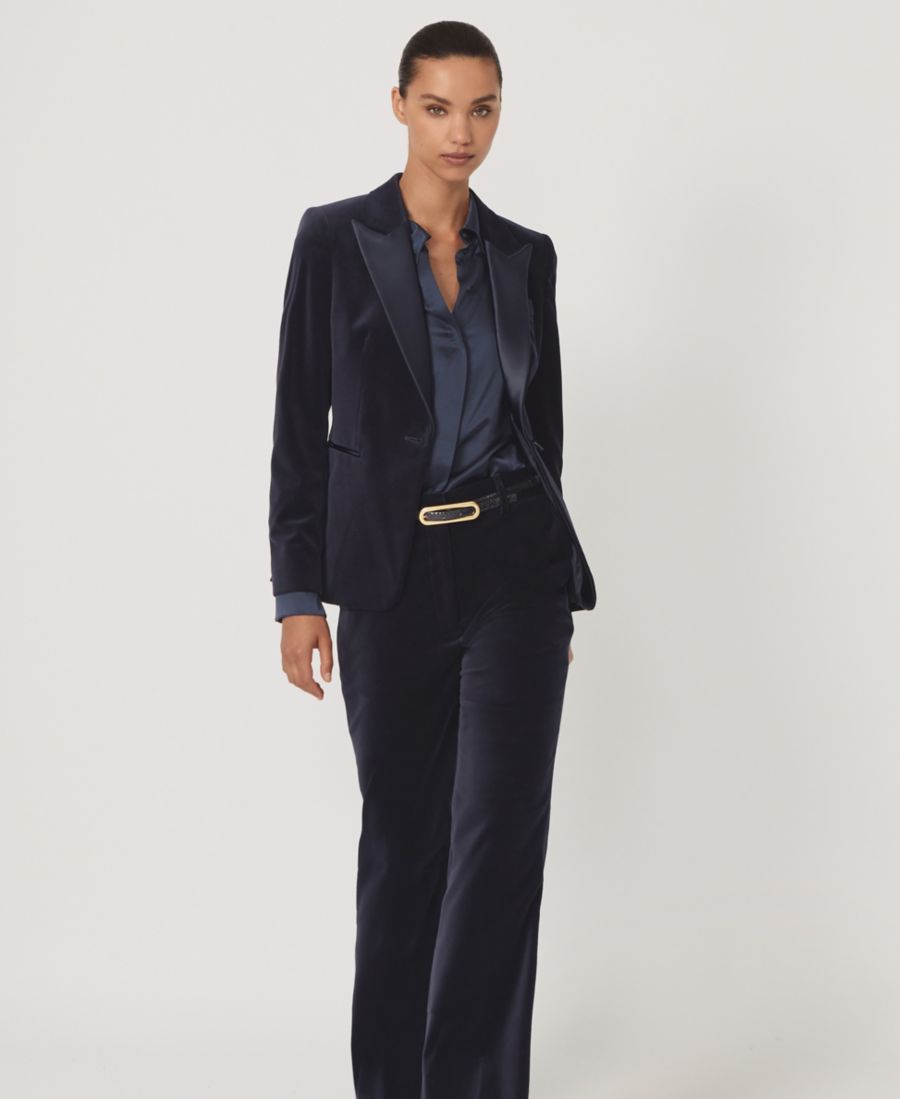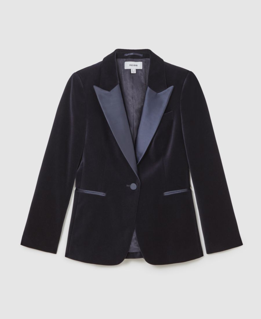 Женский хлопковый бархатный пиджак-смокинг Verda REISS, Navy