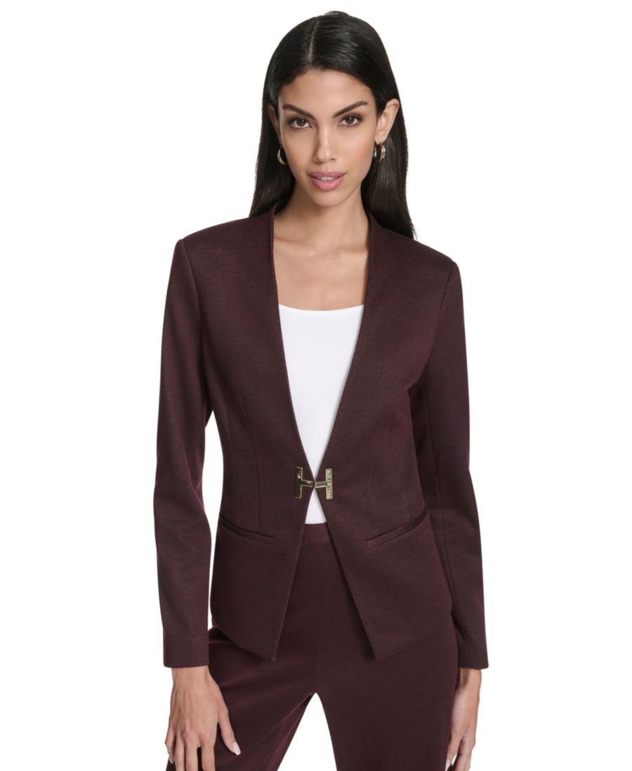 Женский блейзер без воротника из ткани понте Halston, Raisin