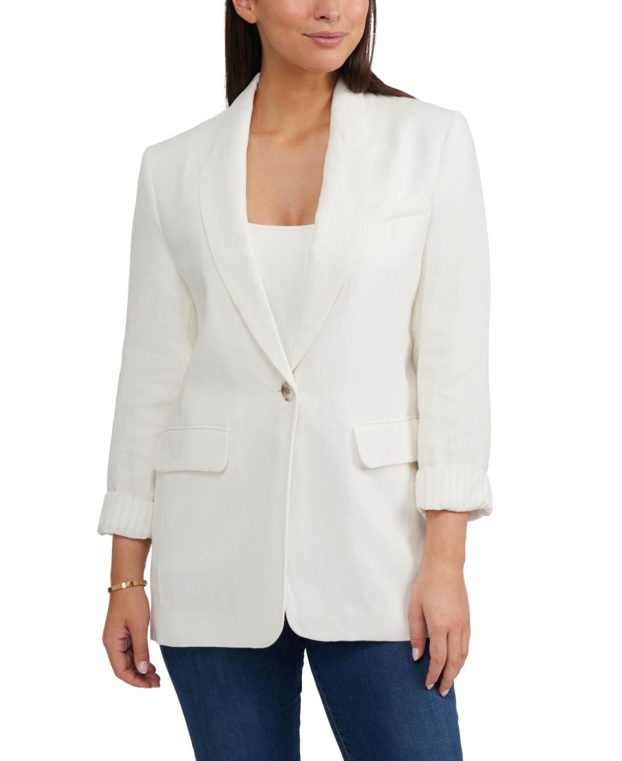 Этот классический пиджак из льняной смеси, выполненный в обновленном стиле, отличается элегантными подвернутыми манжетами, прорезными карманами и подплечниками. Идеально подходит как для дня, так и для вечера!