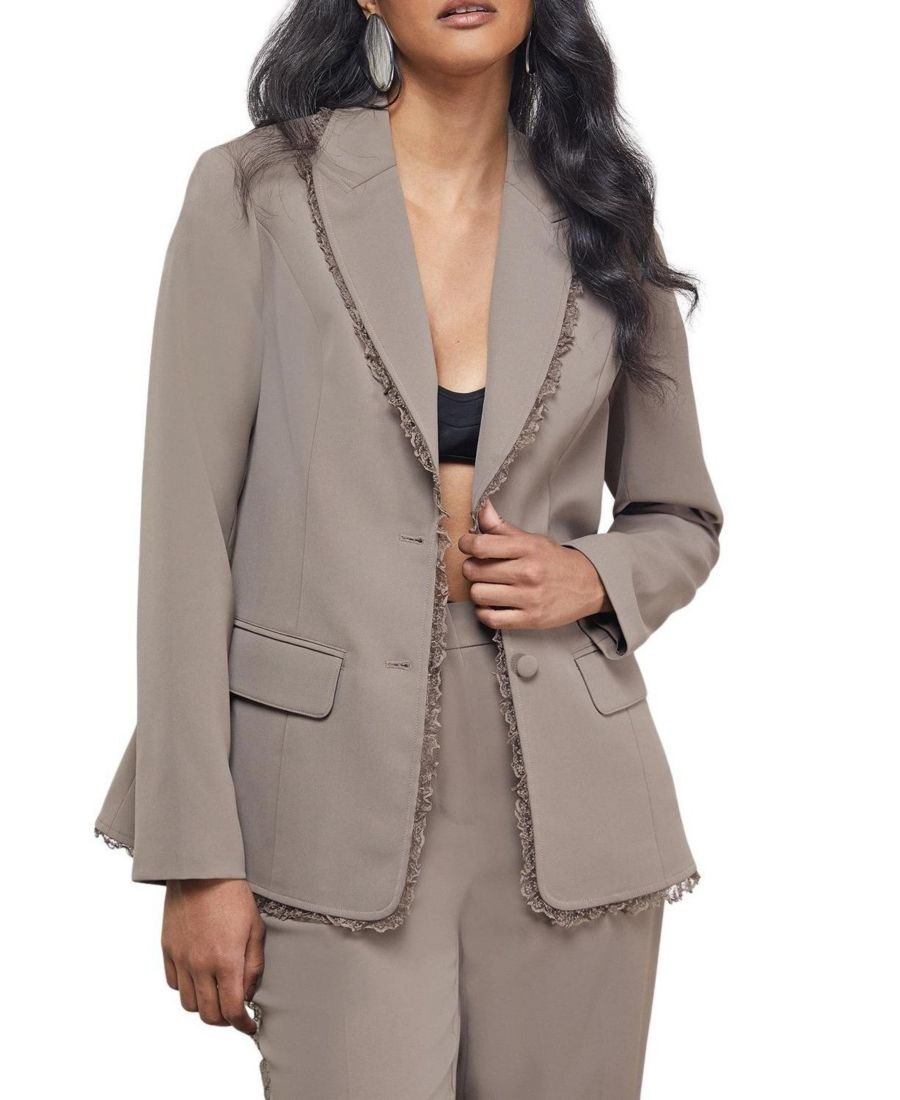Женский блейзер оверсайз с кружевной оборкой Warehouse, Mocha