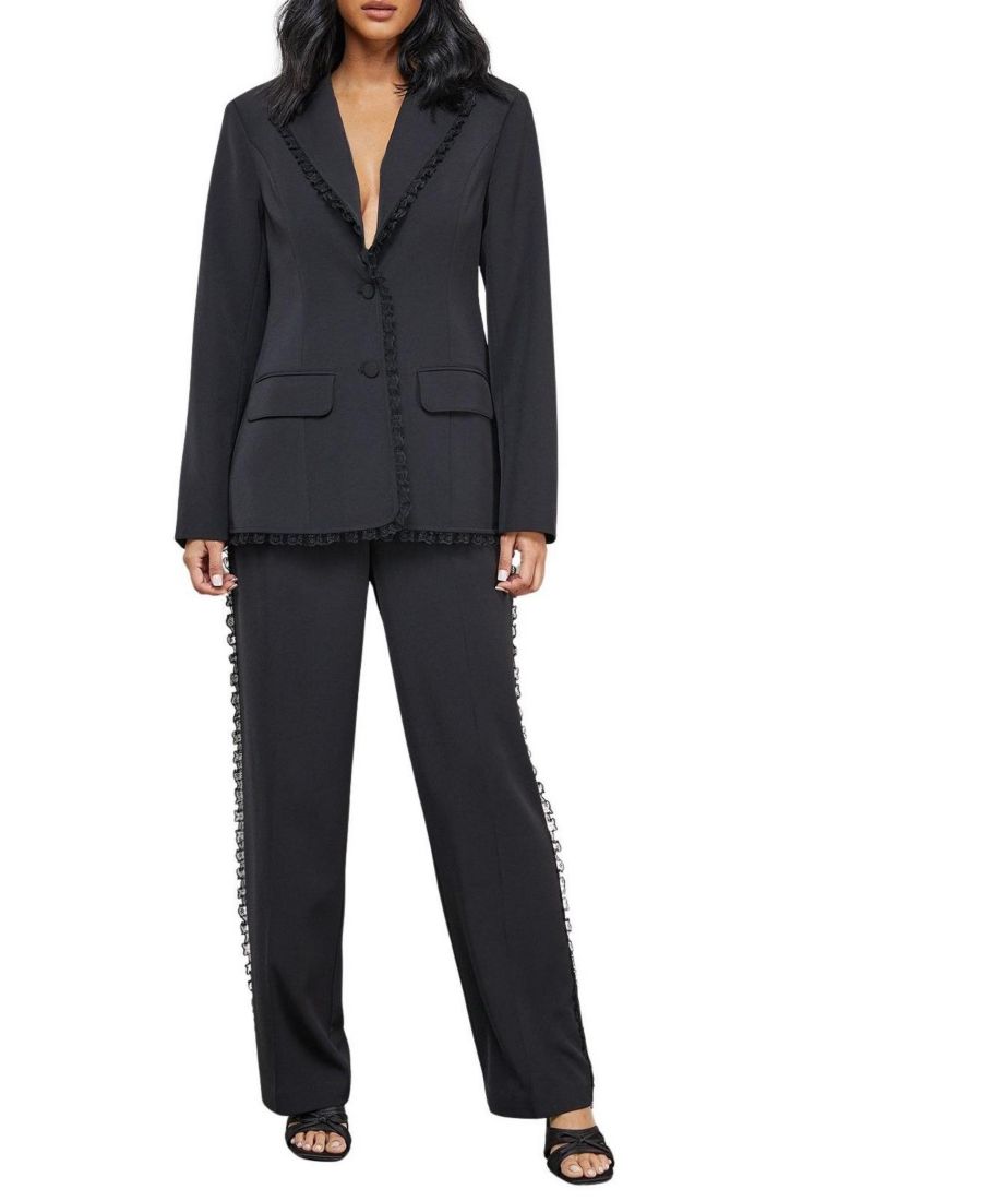 Женский блейзер оверсайз с кружевной оборкой Warehouse, Black