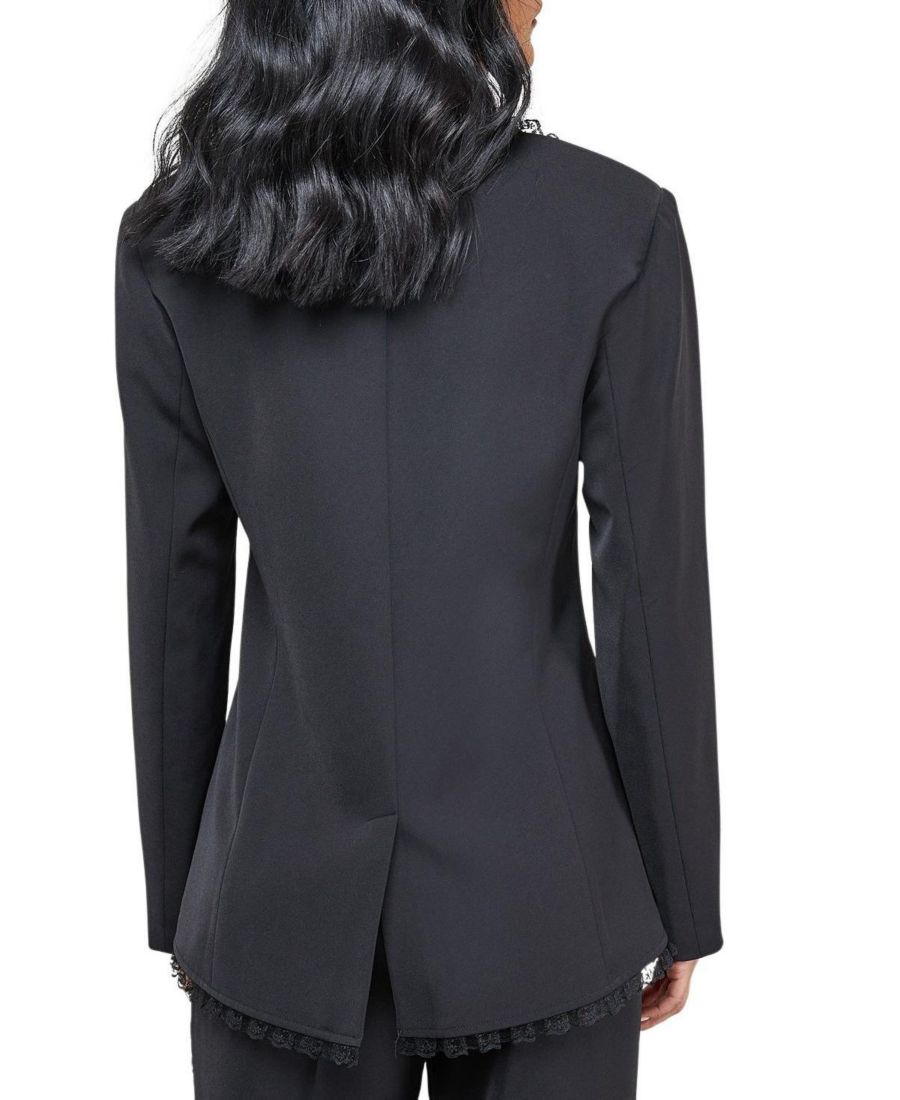 Женский блейзер оверсайз с кружевной оборкой Warehouse, Black 19 038₽