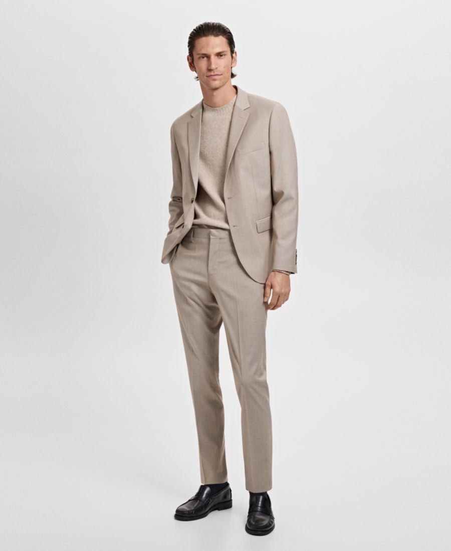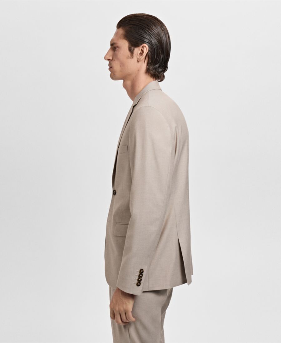 Мужской пиджак из эластичной ткани, приталенный крой MANGO, Sand