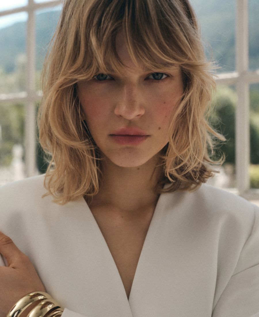 Двубортный пиджак от Mango отличается минималистичным дизайном. Изготовленный из гладкой ткани, этот пиджак имеет приталенный крой.