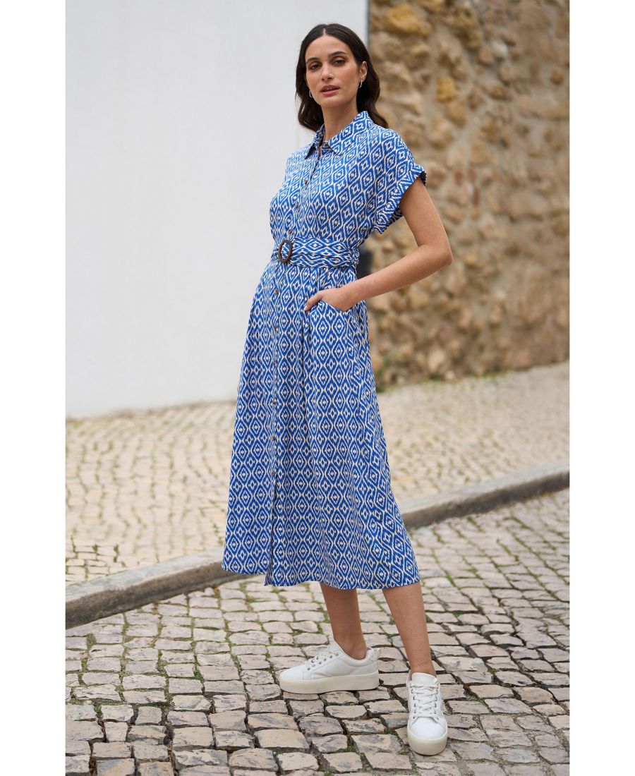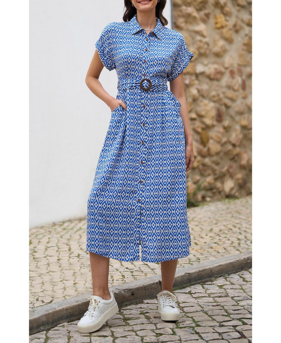 Женское платье-рубашка миди с поясом Yumi, Blue