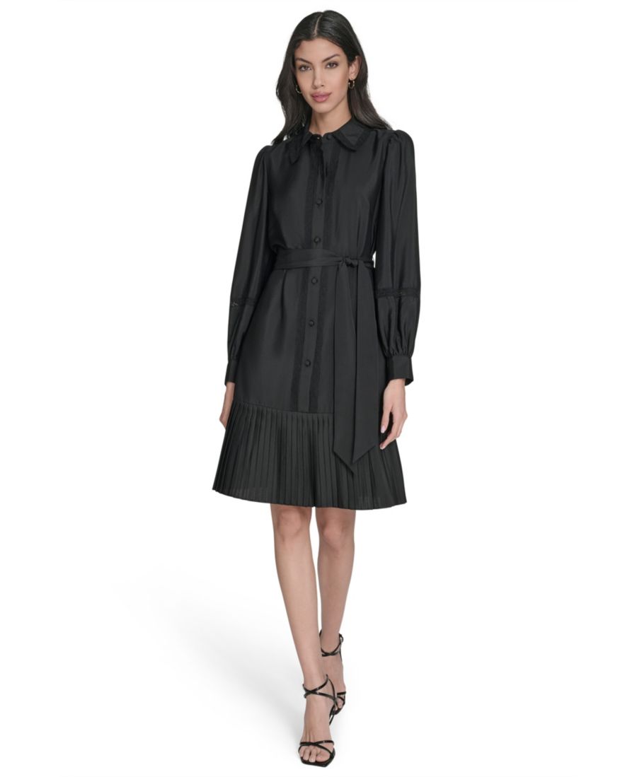 В этом плиссированном платье-рубашке от Eliza J классический воротник и застежка на пуговицы сочетают в себе элегантность и женственность. Оно объединяет строгий крой с мягкими складками для изящных движений. Универсальная вещь, которая идеально подойдет как для работы, так и для выходных.
