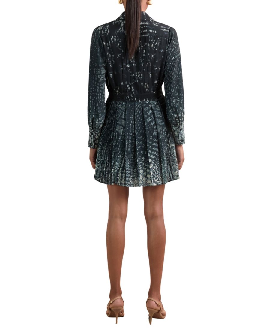 Платье Ali выполнено с анималистическим принтом в сочетании со плиссированной юбкой, затянутой на талии для создания приталенного силуэта. Классический воротник и потайная застежка на пуговицах придают силуэту элегантность, а манжеты на пуговицах добавляют изысканности.
