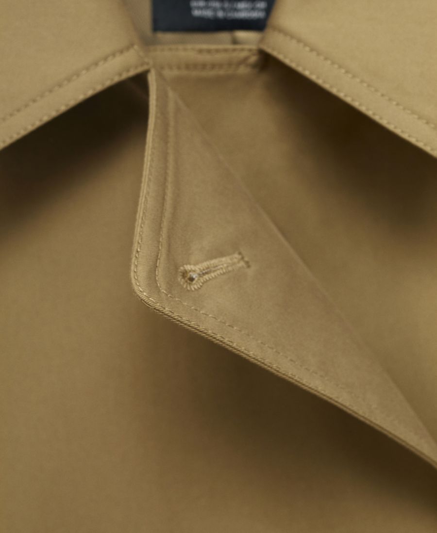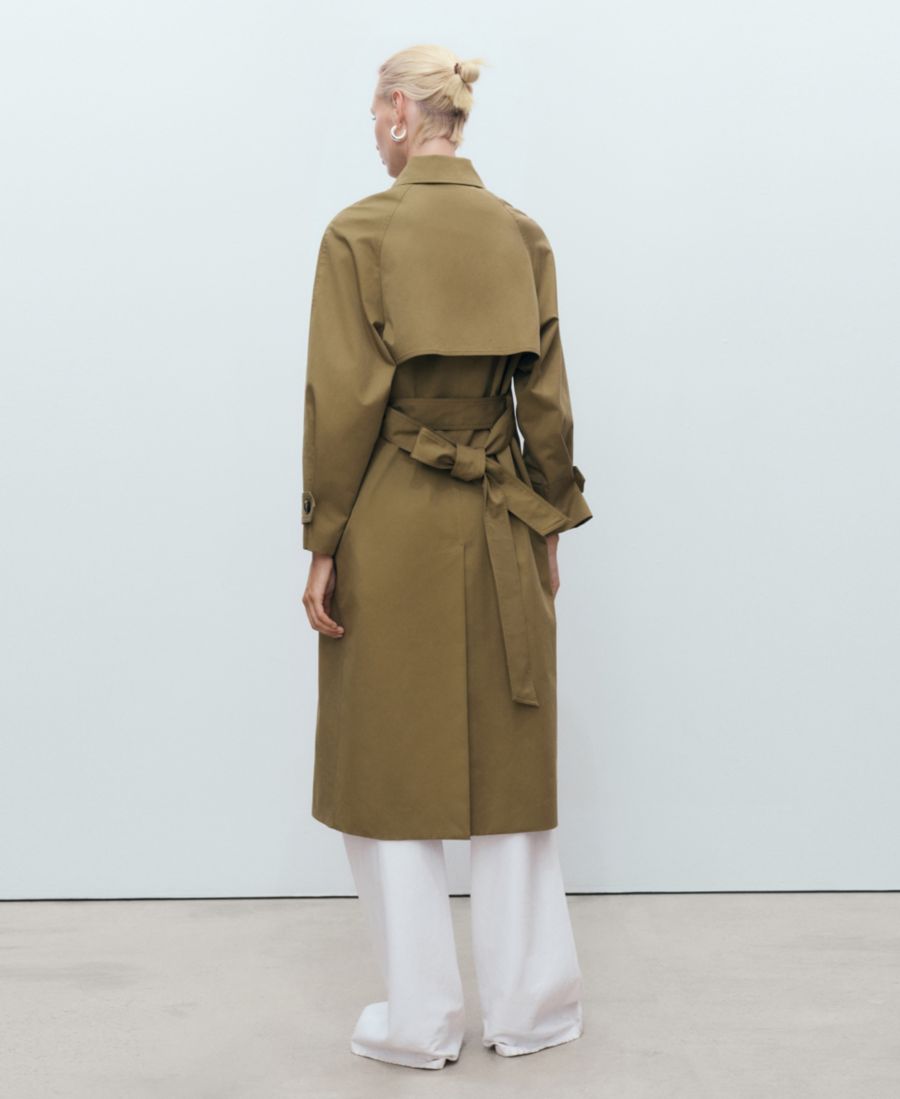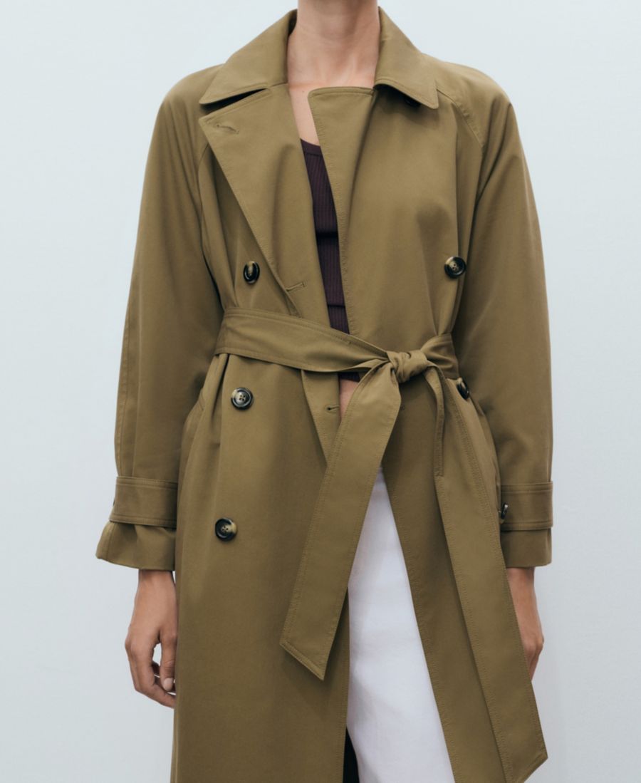 Переосмыслите классику с помощью длинного двубортного тренча от Mango. Изготовленный из хлопчатобумажной ткани, этот длинный тренч имеет прямой крой.