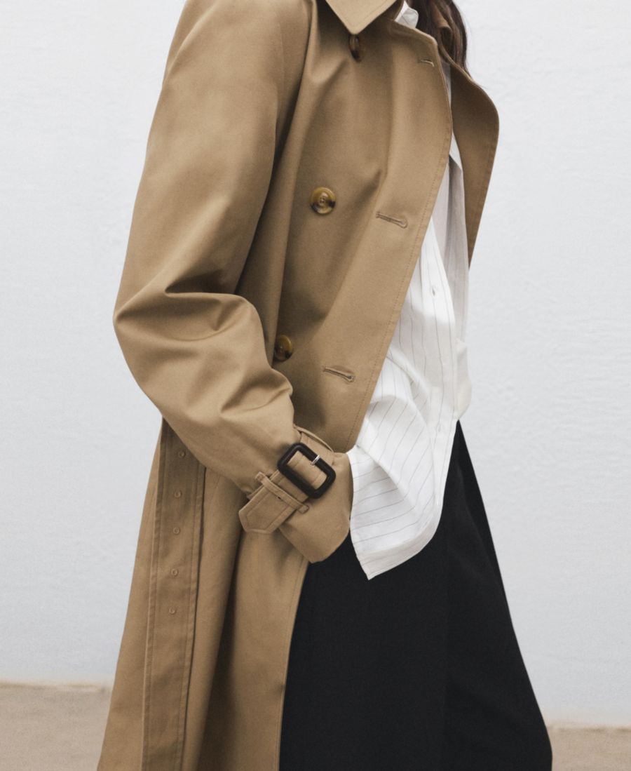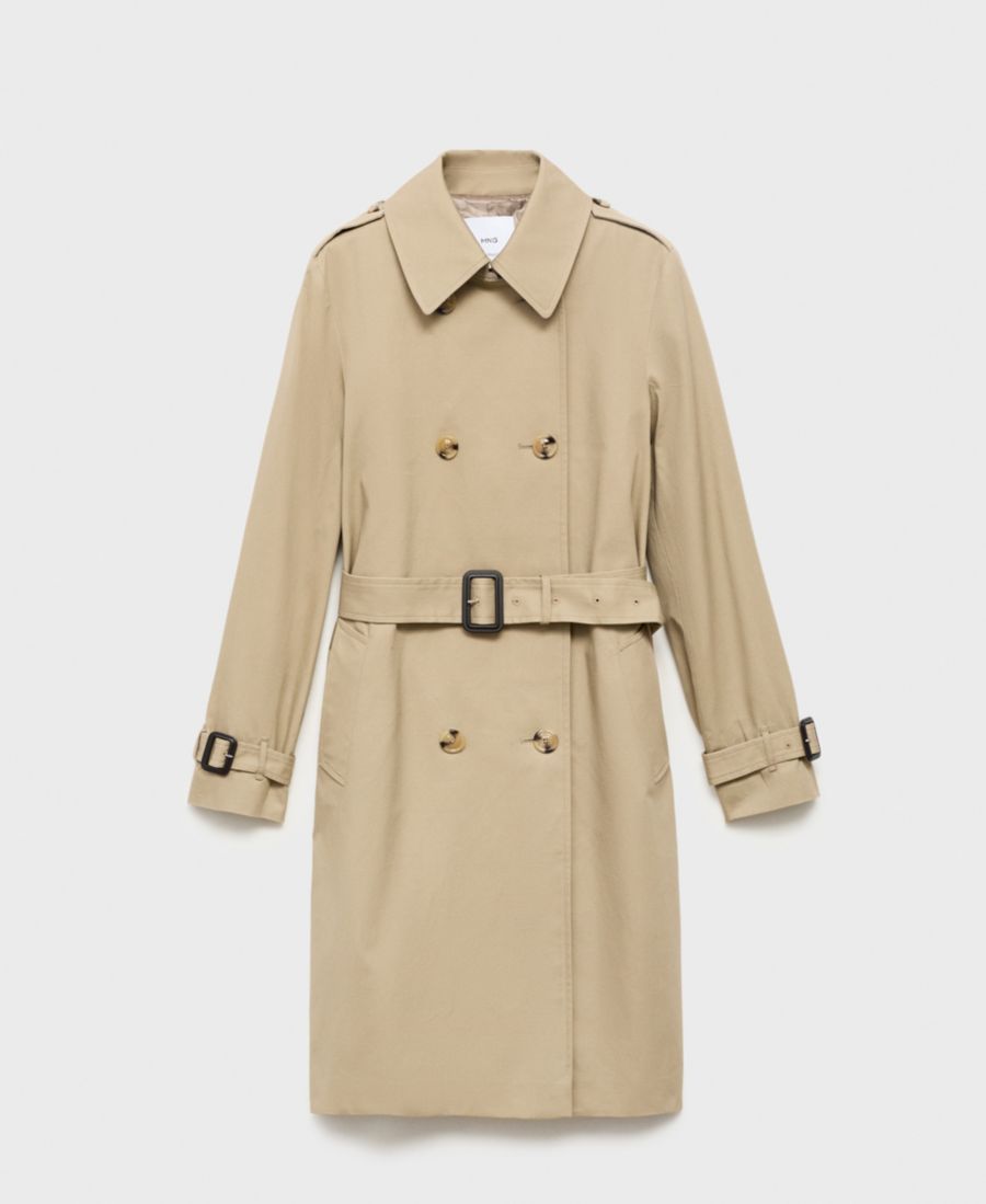 Сохраните классический стиль с классическим тренчем с поясом от Mango. Изготовлен из хлопчатобумажной ткани.
