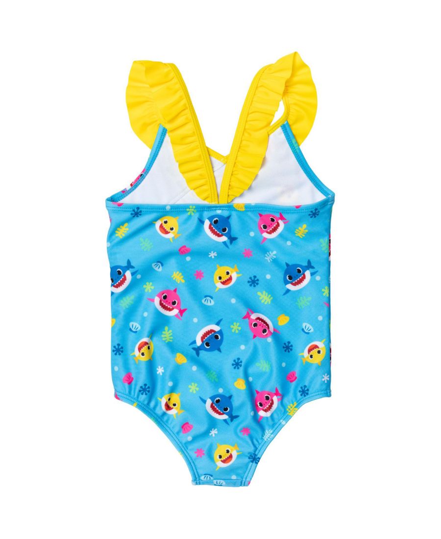 Официально лицензированный детский купальник Baby Shark для девочек, милый и стильный, с рюшами.