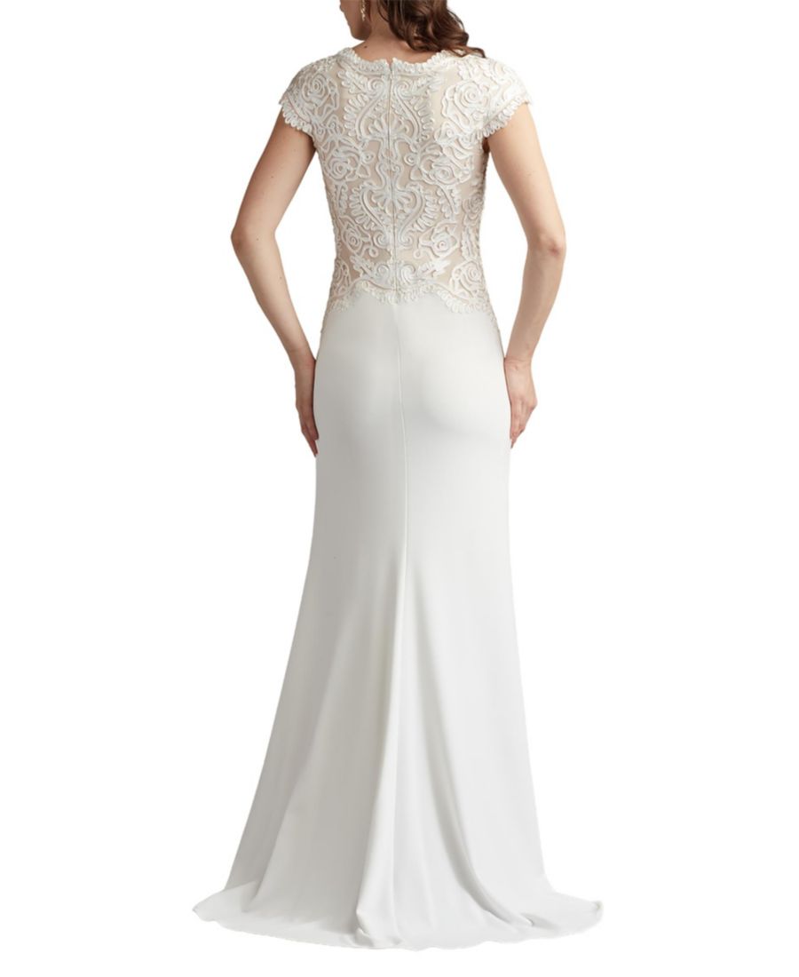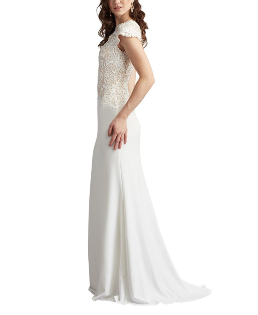 Платье из крепа с вышивкой Изадора Tadashi Shoji, Ivory
